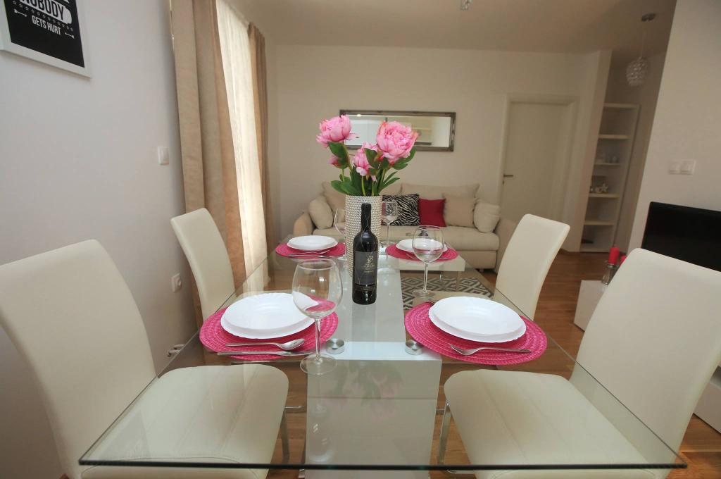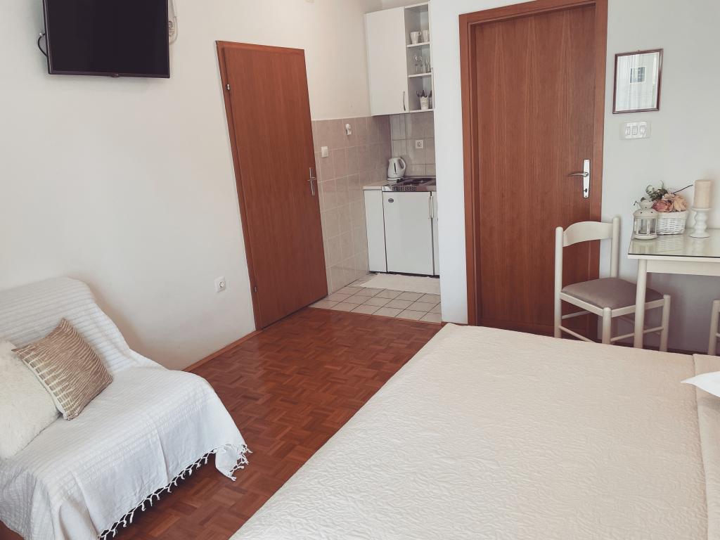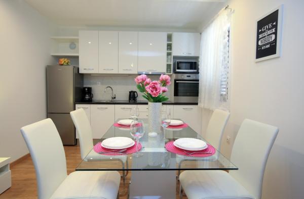 Taxe de sejour est inclus dans le prix.Parking gratuit, Internet Wi-Fi gratuit, L'utilisation de la climatisation est payante (cinq e par nuit), Les animaux sont admis exclusivement et uniquement dans les appartements n°1, n°2 et n°3 et moyennant un supplément, Possibilité de louer des liaisons pour bateau, La possibilité de louer un bateau avec un guide pour un tour des îles environnantes, La possibilité de transport jusqu'à la gare routière, train, aéroport, etc., La possibilité d'utiliser le grill, La possibilité de préparant diverses spécialités dalmates… À moins de 300 mètres de l'appartement se trouvent des magasins, boulangeries, cafés, restaurants, pizzeria, aire de jeux pour enfants