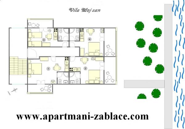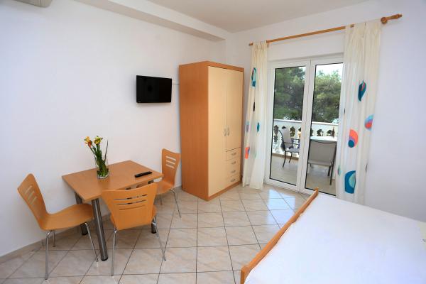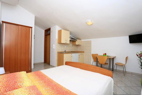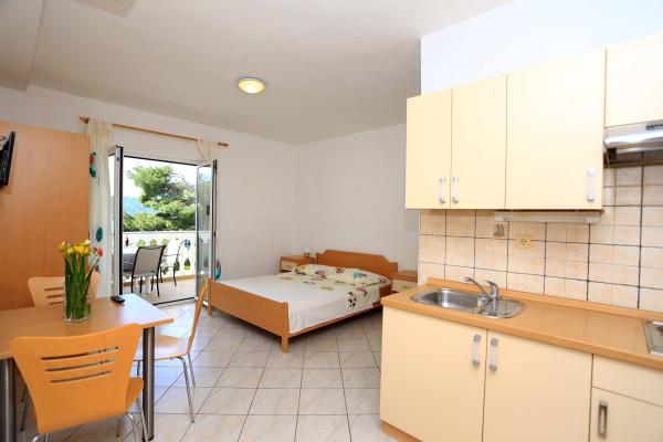 Bienvenue, nous vous proposons un hébergement confortable à des prix abordables Petits studios idéaux pour deux, situés à Zablaće, à 10 minutes en voiture de Sibenik. Endroit calme et paisible, idéal pour des vacances. Les appartements sont au premier rang de la mer, la plage est à 10 mètres de la porte de l'appartement. En face de la maison se trouve une grande cour, donc un parking gratuit est prévu pour tous nos clients. Tous nos appartements sont climatisés, disposent de terrasses, TV / satellite et barbecue. Tous nos clients disposent du WiFi gratuit.