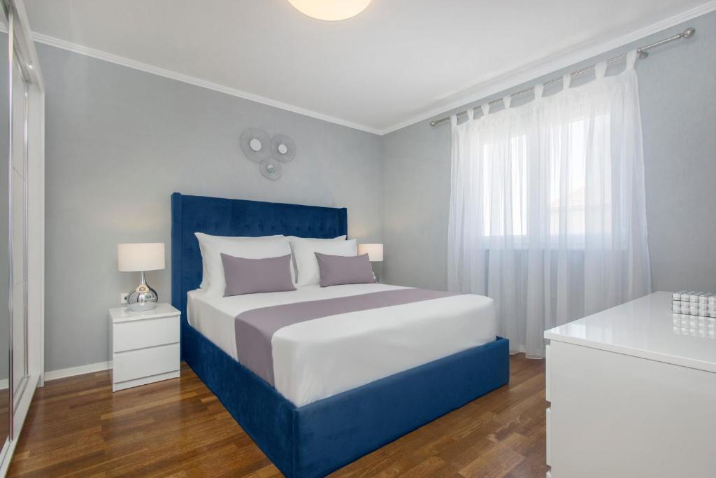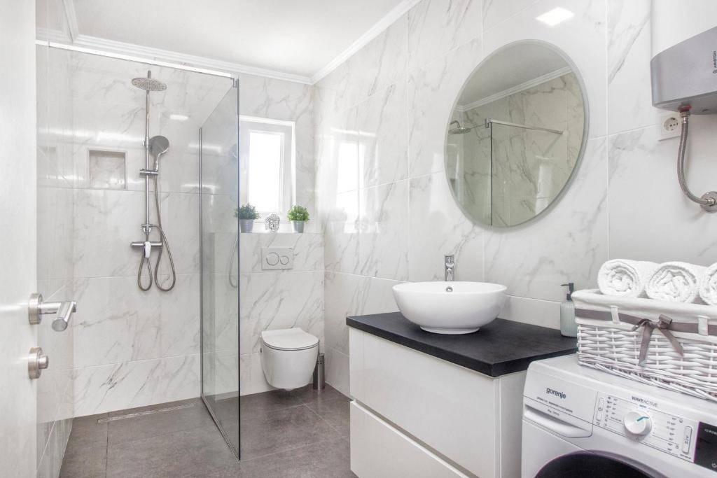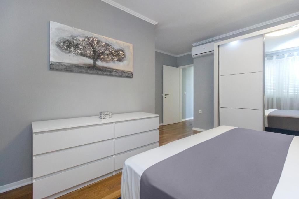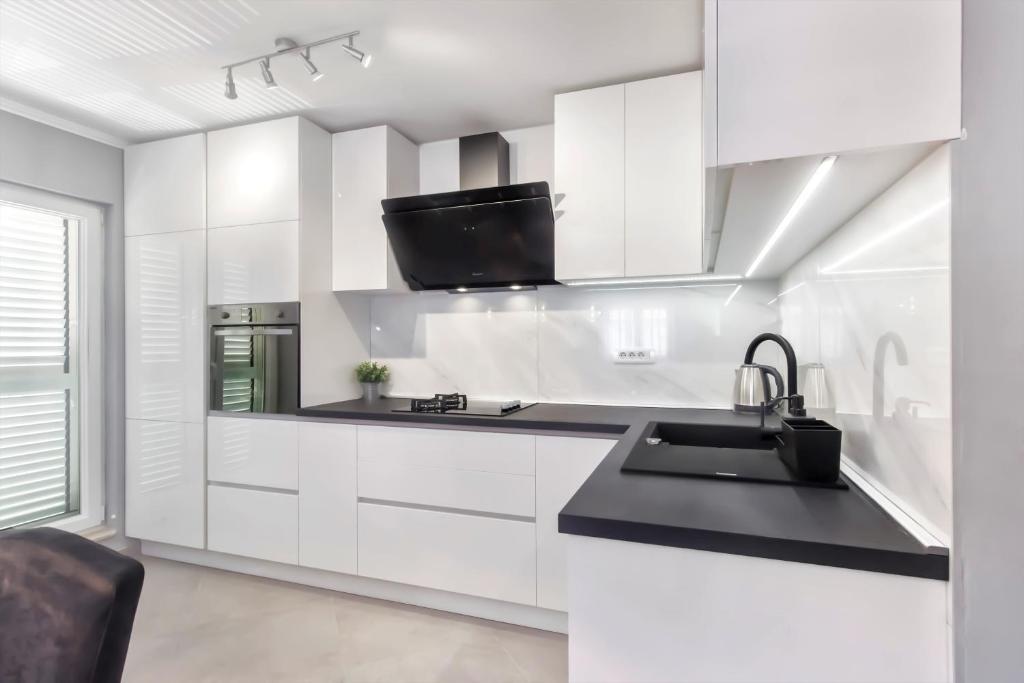 Nouvel appartement penthouse, à louer pour la première fois. La superficie de l'appartement est de 95 m2, au dernier étage de l'immeuble. L'appartement dispose de : 2 grandes chambres, 2 salles de bains, cuisine entièrement équipée, four, lave-linge, lave-vaisselle, 3 climatiseurs, internet, TV satellite, smart TV 160 cm. Le nombre maximum d'invités dans l'appartement est de 5. L'appartement se trouve à quelques minutes à pied de la plage de galets et de l'autocamp de Jasenovo. Place de parking privée sécurisée. Accueillir!