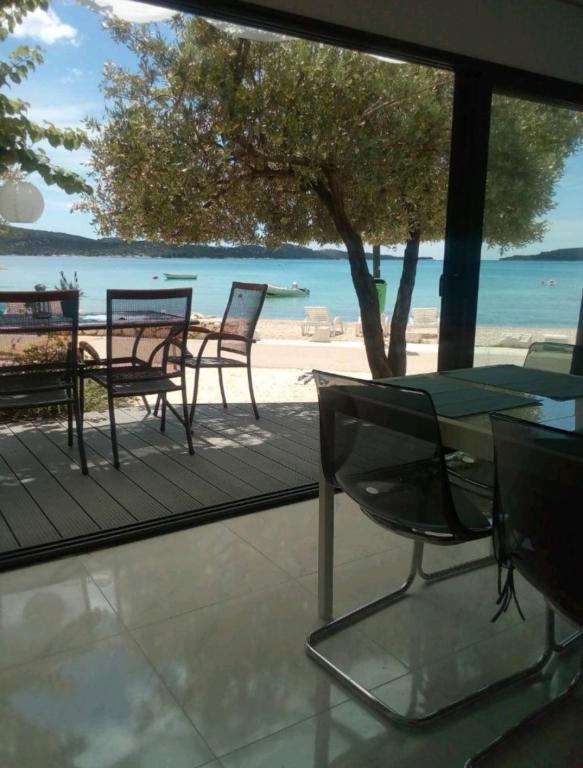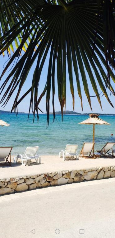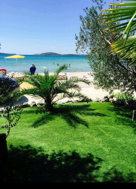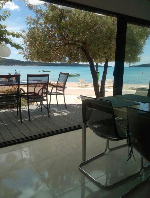 Appartements entièrement et modernes équipés dans un endroit calme Zaboric près de Sibenik, situé au premier rang de la mer. La plage est juste en face de l'immeuble à 5 mètres de l'appartement. Tous les appartements ont une vue sur la mer. Tous les appartements sont équipés de tous les appareils électroménagers du lave-vaisselle, lave-linge, micro-ondes, plaques de cuisson, four, bouilloire, réfrigérateur avec congélateur, TV SAT, Internet WI-FI, sèche-cheveux, grille-pain. Certains appartements disposent d'une machine à glace. Tous les appartements disposent d'un parking gratuit, et l'utilisation gratuite du barbecue dans la cour ainsi que des chaises de plage gratuites. Les animaux sont admis. Possibilité d'utiliser des couchettes pour un bateau jusqu'à 7 mètres, et un parking pour une remorque. Lit bébé sur demande. Vous pourrez vous détendre sur un hamac à l'ombre du jardin. Il est possible de louer un bateau et un jet ski à côté de la maison. Il y a un trampoline aquatique pour les enfants à proximité, ainsi qu'un trampoline terrestre.