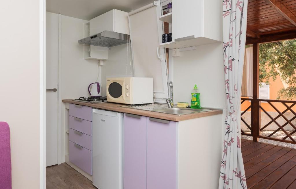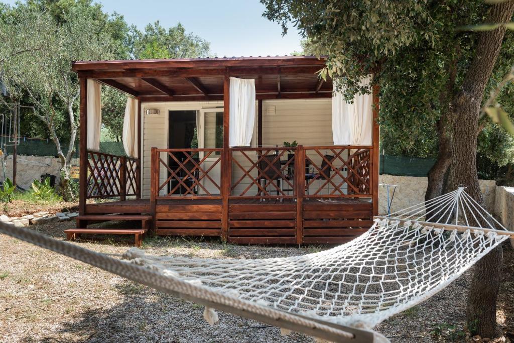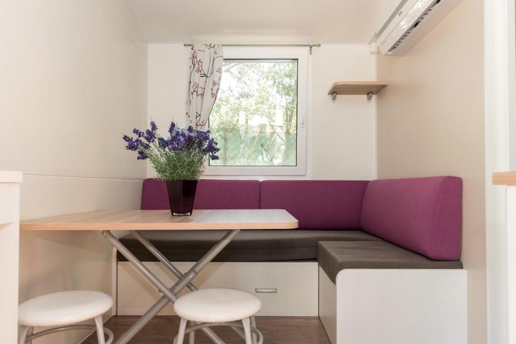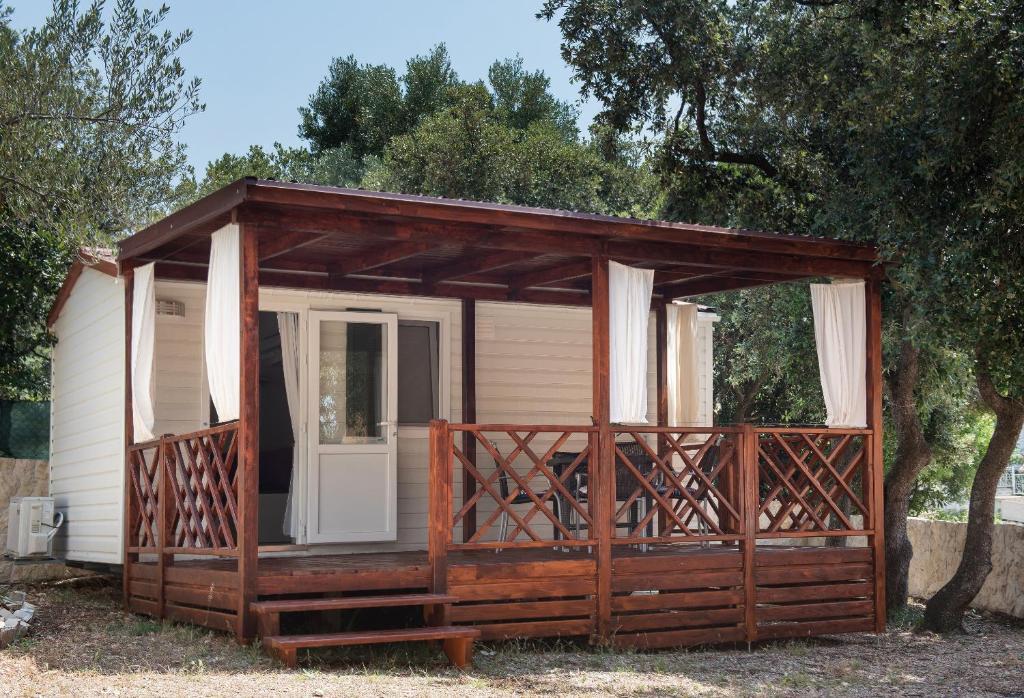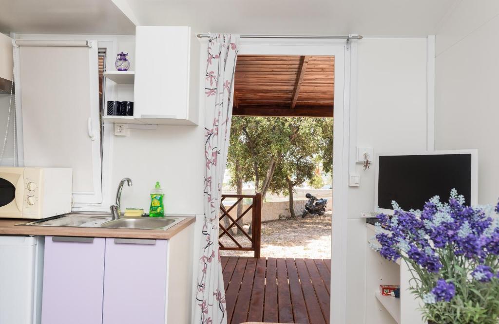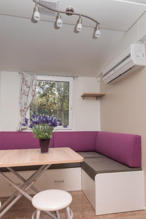 Le mobil-home est situé en plein centre de Žaborić. Il comprend une chambre, une salle de bains, une cuisine et un séjour. Il dispose d'une grande terrasse aménagée avec une table, des chaises et deux transats. Un parking est disponible juste devant le mobil-home.