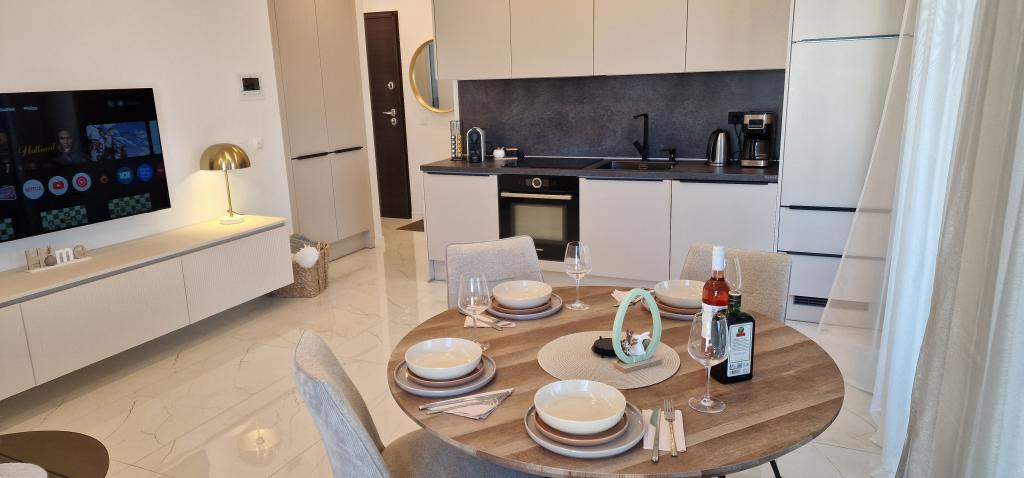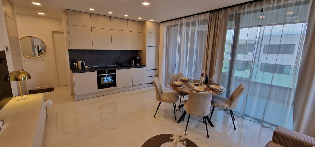 Ambiente Borik, un nouvel appartement en bord de mer, offre une combinaison parfaite de confort, d'espace et d'ambiance. Il est situé dans un excellent emplacement "Borik Zadar" à proximité de plages bien entretenues et de l'hôtel Falkesteiner. Le salon est spacieux et lumineux, idéal pour se détendre et socialiser. La cuisine est entièrement équipée avec tous les appareils et ustensiles de cuisine nécessaires. Avec deux chambres, chacune équipée de lits confortables et de meubles élégants, et deux salles de bains, il offre suffisamment d'espace pour accueillir 2 couples ou un groupe jusqu'à 4 personnes. La grande terrasse offre un espace supplémentaire pour la détente en plein air. Sur la terrasse, vous pourrez prendre votre petit-déjeuner ou un verre en soirée, en toute intimité et dans un coin tranquille propice à la détente. L'appartement est luxueusement meublé avec des détails soigneusement sélectionnés. Il y a également un parking privé ainsi qu'un garage, qui assurent commodité et sécurité aux clients arrivant en voiture. En bref, cet appartement en bord de mer offre tout ce dont vous avez besoin pour un séjour confortable. L'ascenseur était le bienvenu après une promenade fatigante le long du front de mer de Zadar.