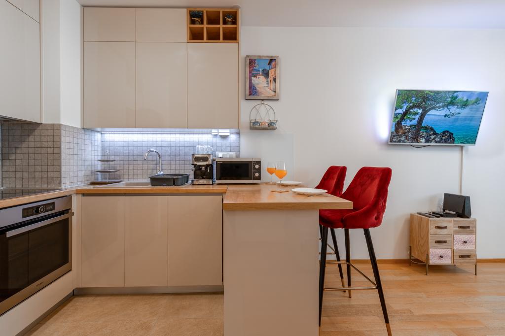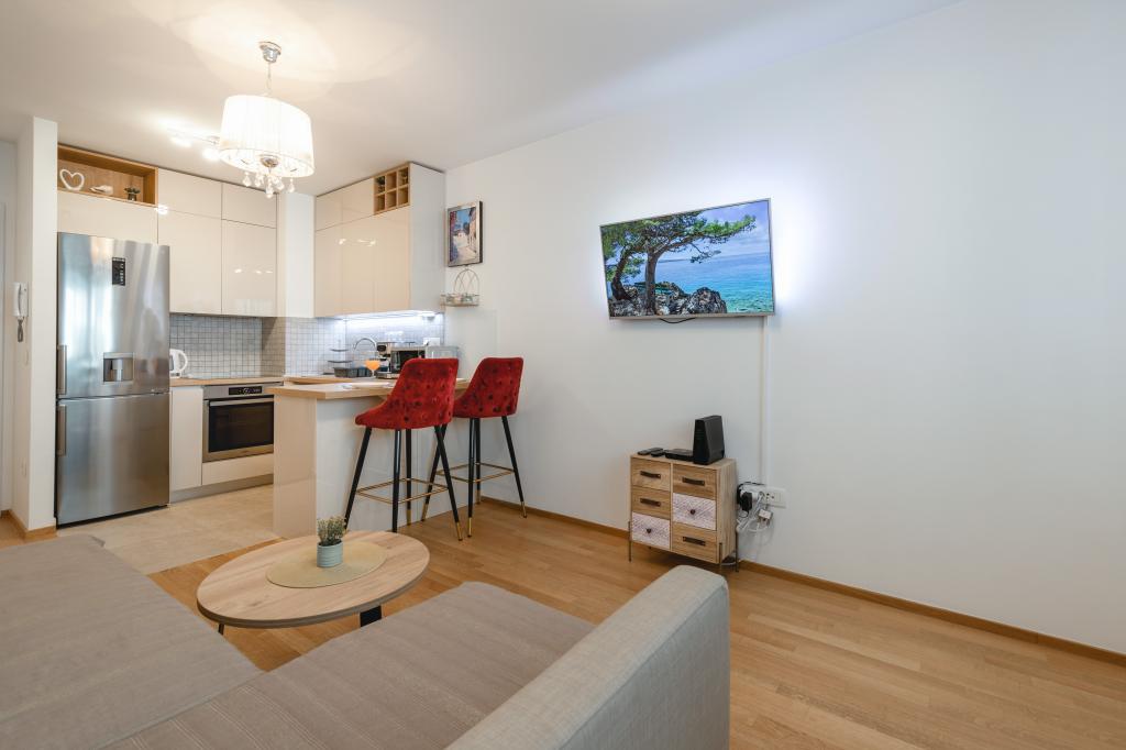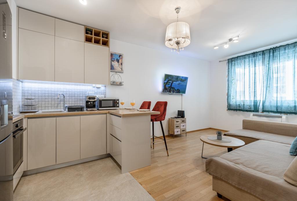 Profitez d'un appartement confortable et décoré avec goût pour deux personnes, idéal pour un séjour relaxant dans la magnifique ville de Zadar. Cet appartement est parfait pour les couples, les voyageurs d'affaires ou les vacanciers actifs souhaitant séjourner à proximité du centre-ville et des installations sportives. Son emplacement est idéal : à seulement quinze minutes à pied du centre-ville et à 200 mètres du complexe sportif Višnjik. Les grands centres commerciaux Lidl et Kaufland sont également accessibles à pied. Un atout majeur de cet appartement est sa place de parking privée juste à côté de l'immeuble, à quelques mètres de votre fenêtre, un véritable luxe en centre-ville. L'emplacement vous garantit un séjour au calme, loin de l'agitation urbaine, tout en vous permettant de rejoindre facilement le centre-ville à pied. Commencez la journée par une promenade dans la vieille ville, passez la journée au bord de la mer ou sur les terrains de sport de Višnjik, et le soir venu, détendez-vous dans le calme et le confort de votre appartement.