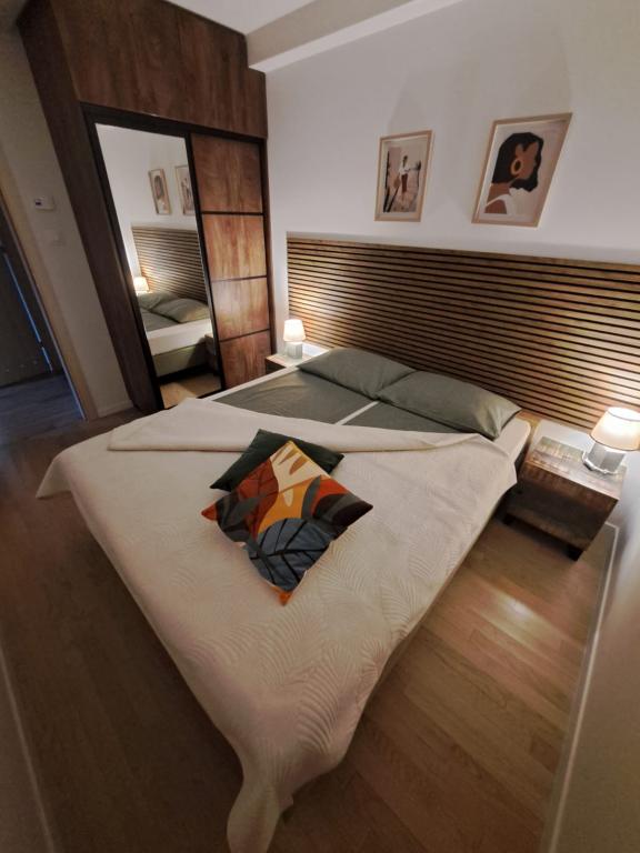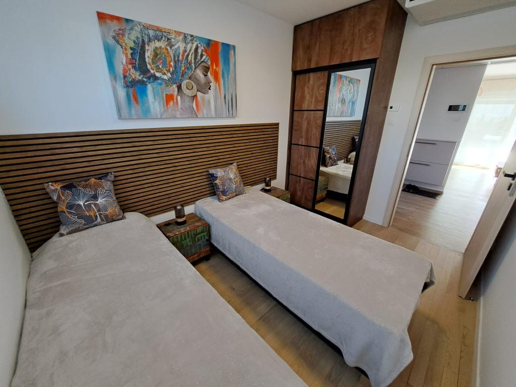 Equipements : - climatisation et chauffage dans chaque pièce - pompe à chaleur, chauffage au sol dans la salle de bain - WiFi - TV - lave-linge séchant - lave-vaisselle - four avec micro-ondes - plaque à induction - réfrigérateur - vaisselle, ustensiles de cuisine, couverts - bouilloire - machine à café ( capsules) - torchons - linge de lit - serviettes de toilette - serviettes de jacuzzi - sèche-cheveux - coffre-fort - salon de jardin - douche extérieure - sèche-linge et pinces à linge - produits d'entretien de base L'appartement ne dispose pas de barbecue. D'excellents plats grillés peuvent être achetés dans les restaurants à proximité. DISTANCES : 600 m - Centre sportif et récréatif de Višnjik (piscines couvertes, courts de tennis et de paddle, football, basket-ball, tennis de table, pistes de course, salle de sport en plein air, aires de jeux pour enfants, parc de trampolines, mini-golf, château gonflable, piste de roller / patinoire en hiver) /) 1,8 km - vieille ville - Poluotok 2 km - plage de Kolovare 1,6 km - gare routière principale 10 km - aéroport de Zemunik