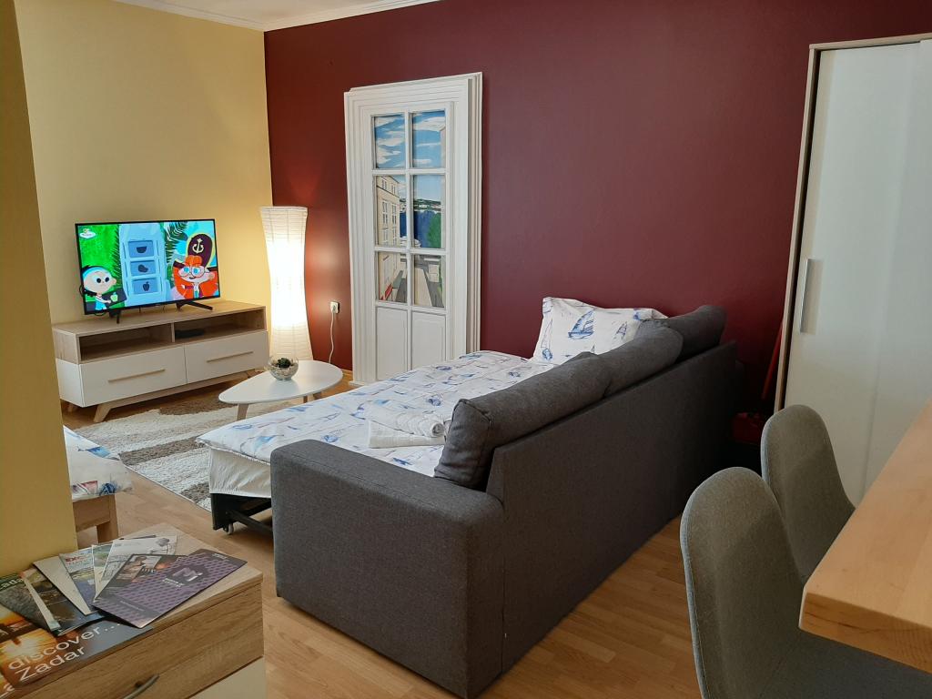 J'ai été entièrement satisfait de cet appartement! Il est situé dans le centre de Zadar. Il y a une cathédrale et de nombreux restaurants à proximité, mais la rue est très calme et le client peut vraiment se détendre dans cet appartement. La mini cuisine a tout le nécessaire, même des verres à champagne et à vin. Meublé avec beaucoup de goût et propre ! La machine est équipée d'une télévision Sony, de la climatisation, du WIFI, d'une machine à café brune (filtre). Mme Mathilde et son mari sont des gens très gentils et gentils. Dans tous les cas, je reviendrai dans cet appartement. Je l'ai déjà recommandé à mes amis proches !
