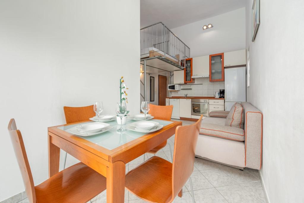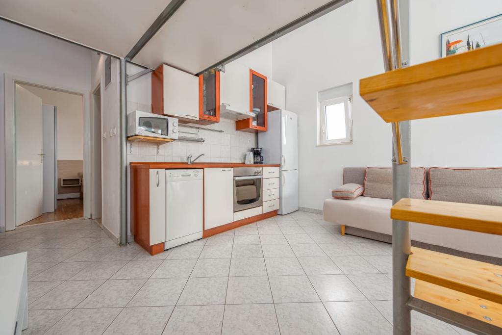 L'appartement Petković est situé à Diklo, un quartier touristique réputé de Zadar. Idéal pour des vacances en famille paisibles et reposantes pour 4 personnes, il offre une superficie de 45 m² et se trouve à 350 mètres de la mer. Il comprend une chambre avec un lit double, un séjour/cuisine, un balcon, une salle de bains avec WC et une mezzanine avec un lit d'appoint pour deux personnes. L'appartement est équipé d'un lave-linge, d'un lave-vaisselle, d'un micro-ondes, d'une connexion Wi-Fi et de la climatisation. Il est permis de fumer sur le balcon ; l'appartement n'est pas adapté aux non-fumeurs. Le parking est gratuit devant l'immeuble. À proximité de la plage, vous trouverez un café, un supermarché, une boulangerie, une pâtisserie et un arrêt de bus. Des restaurants et une pizzeria sont à 500 mètres.