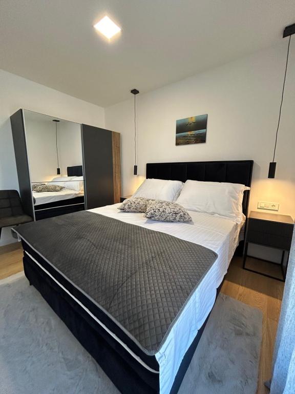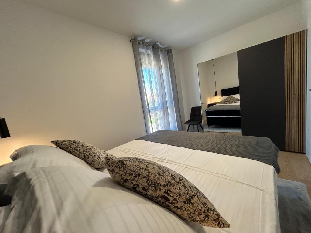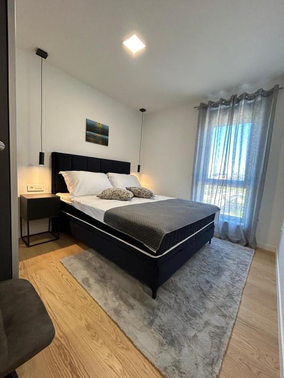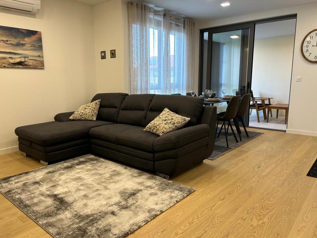 Nouveau!!! L'appartement se compose de : deux chambres avec de grands lits, un salon spacieux avec salle à manger et cuisine, salle de bain et accès à la loggia... Appartement à la décoration moderne dans un quartier calme de la ville, place de parking sécurisée, à proximité de la plage, commerces, restaurants, promenade, courts de tennis, café-bar, aire de jeux pour enfants, à proximité de la marina - possibilité de louer un bateau, ...