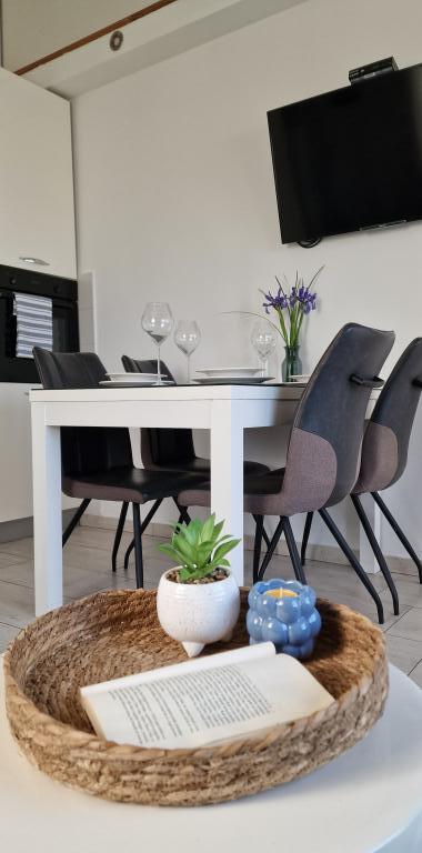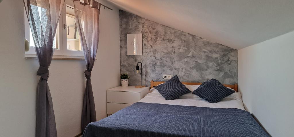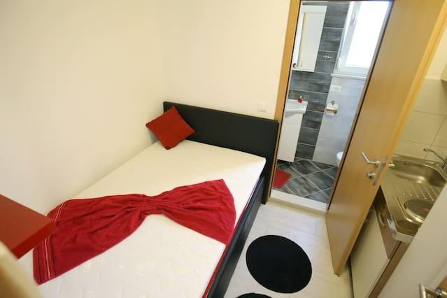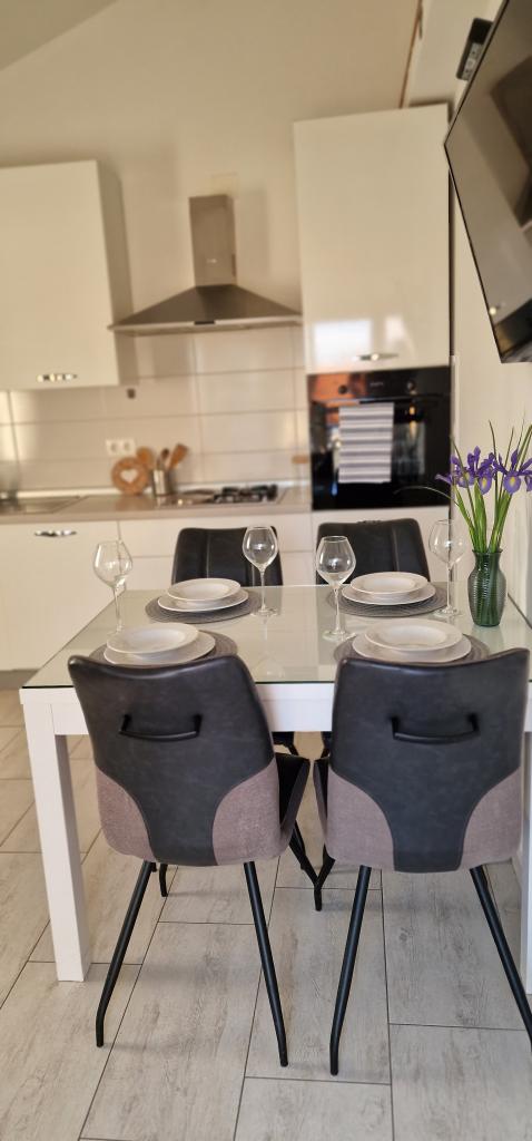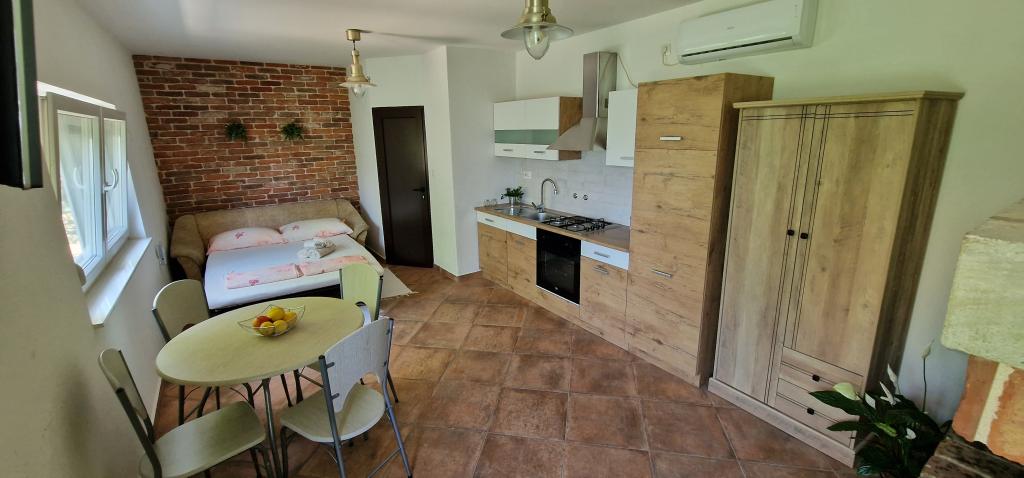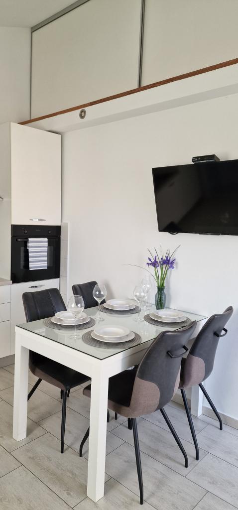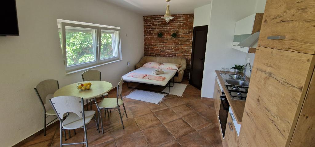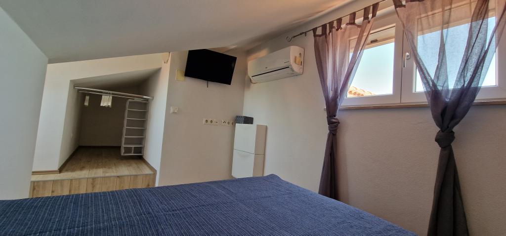 Appartements Iva sont situés dans un emplacement légèrement surélevé, dans une deuxième villa moderne à 5 km de la vieille ville. L'offre, en plus d'une connexion Wi-Fi et un parking privé, dans 2 autres appartements, vous trouverez des chambres élégantes, avec de l'air conditionné dans chacune d'entre elles (3 climat par personne), séjour / cuisine meublée avec un style et d'une télévision à écran LCD, spacieux terrasse où vous pourrez vous détendre et profiter de la vue, salle de bain avec douche, etc. des appartements plus grands se composent de deux chambres, un lit double dans une et lits pour 1 personne qui se prolonge dans un lit pour 2 personnes dans la deuxième chambre. Canapé dans le salon, si nécessaire, être transformé en un lit pour 2 personnes. La cuisine est équipée avec tout le nécessaire pour le repos confortable: réfrigérateur, four, lave-vaisselle (1 suite) ... Studio est un plus petit espace de 25m2, qui couvre 2 étages et est adapté accueillir 2 personnes. Il se compose de 1 chambre avec lit double à l'étage supérieur, et la cuisine et salle de bain sur le fond. Tous les appartements ont été récemment rénovées.