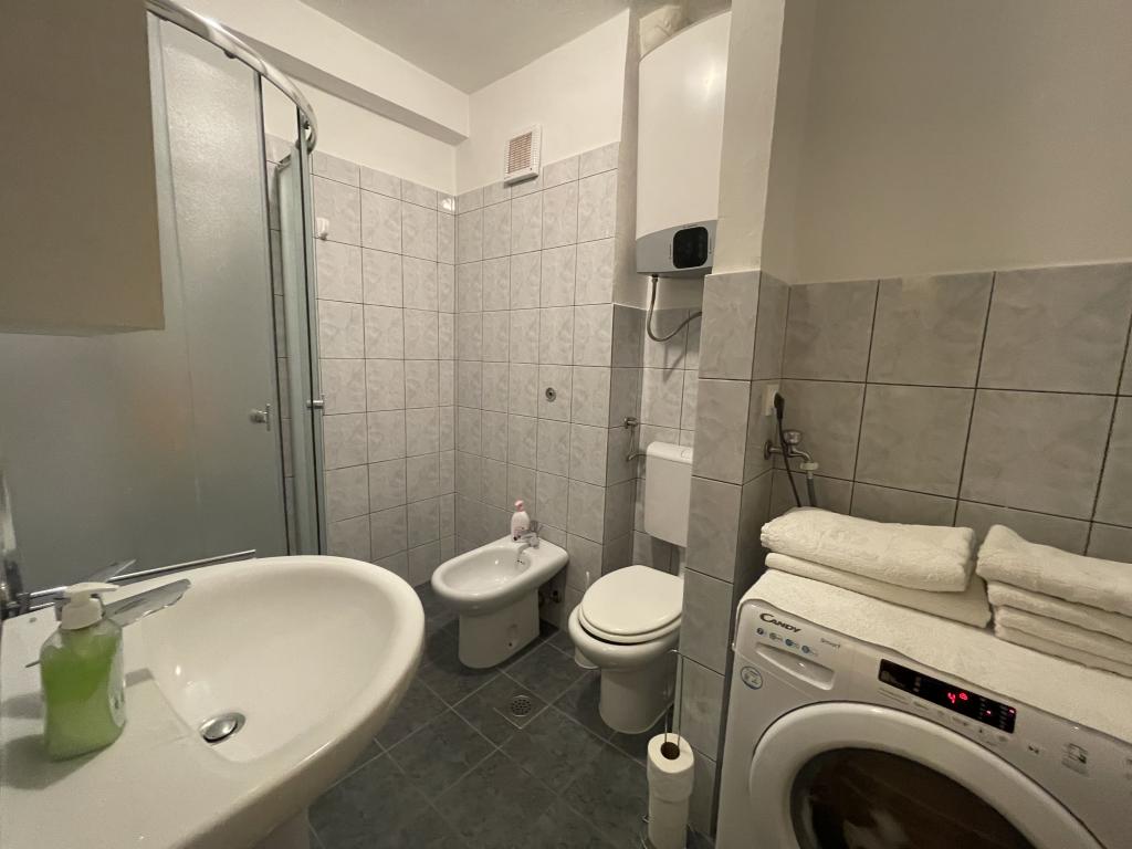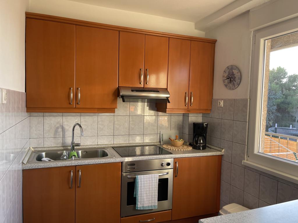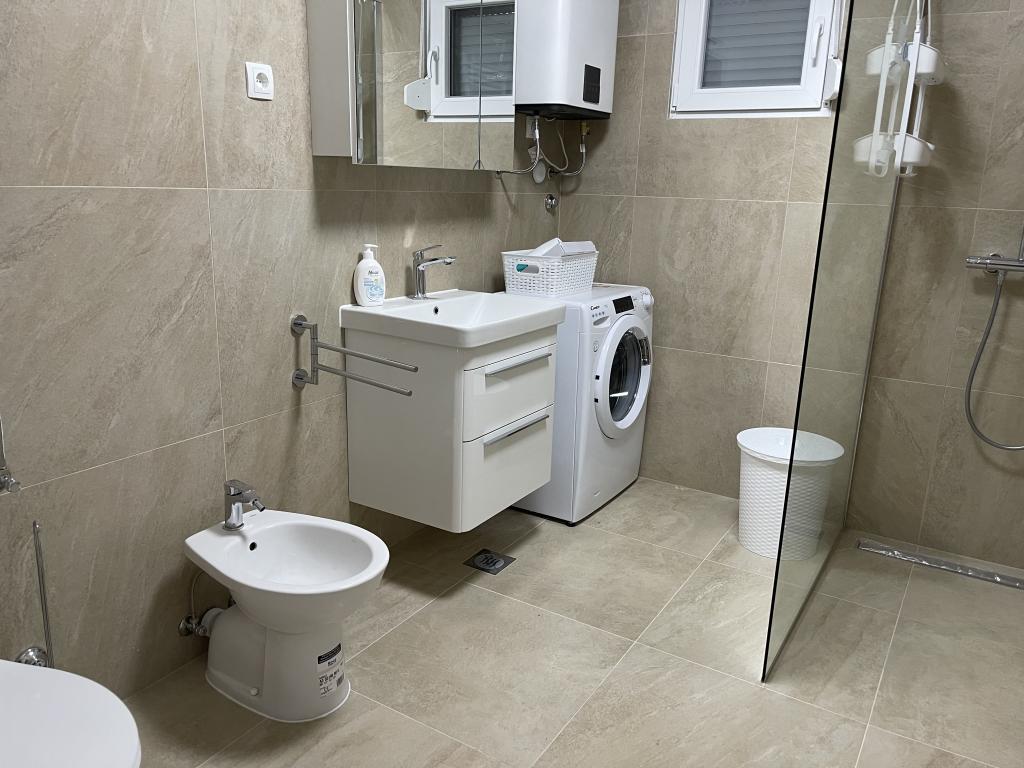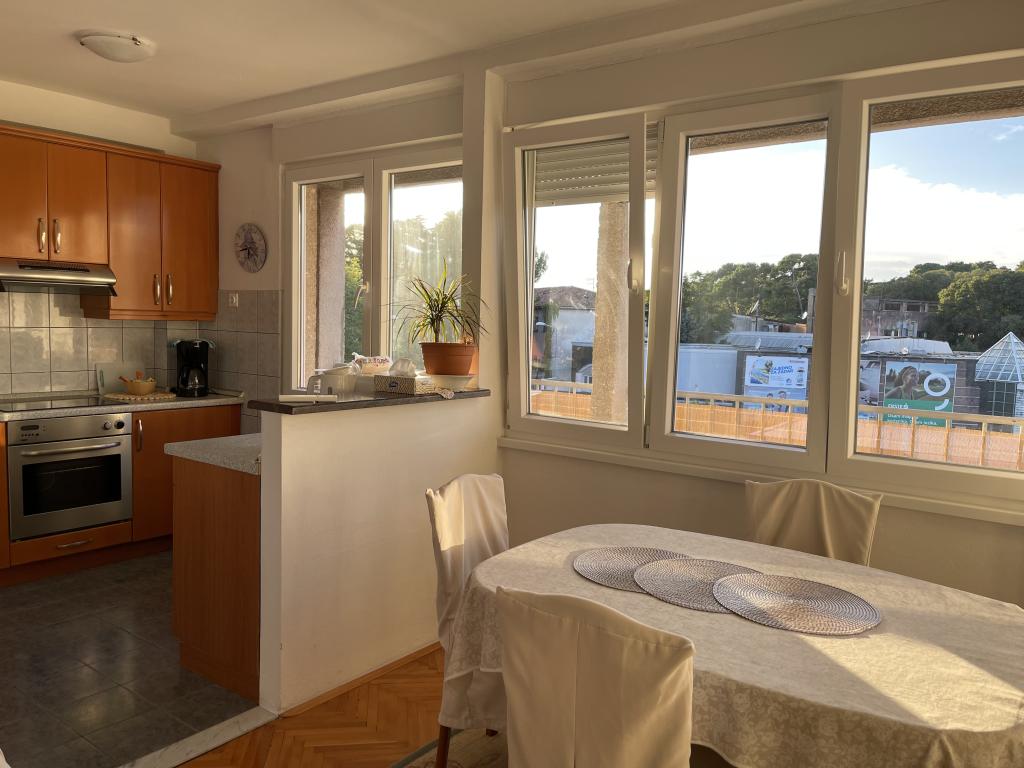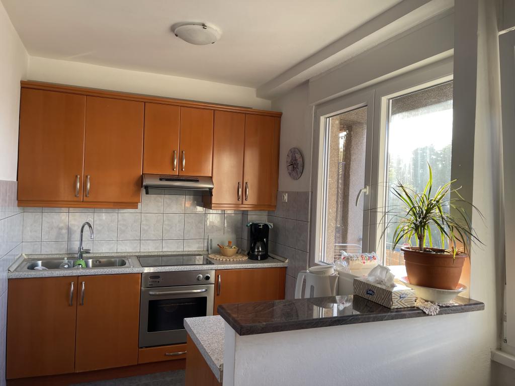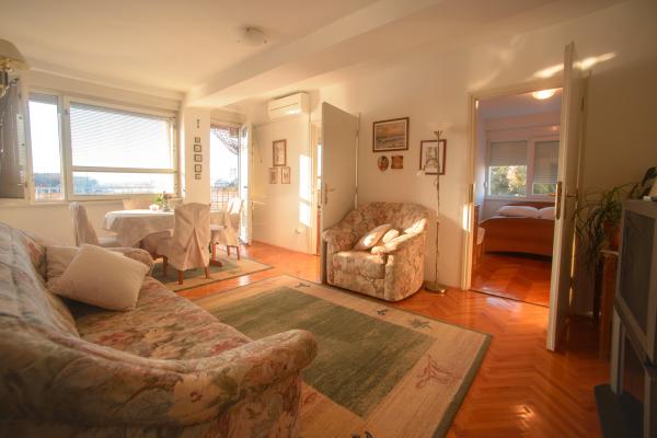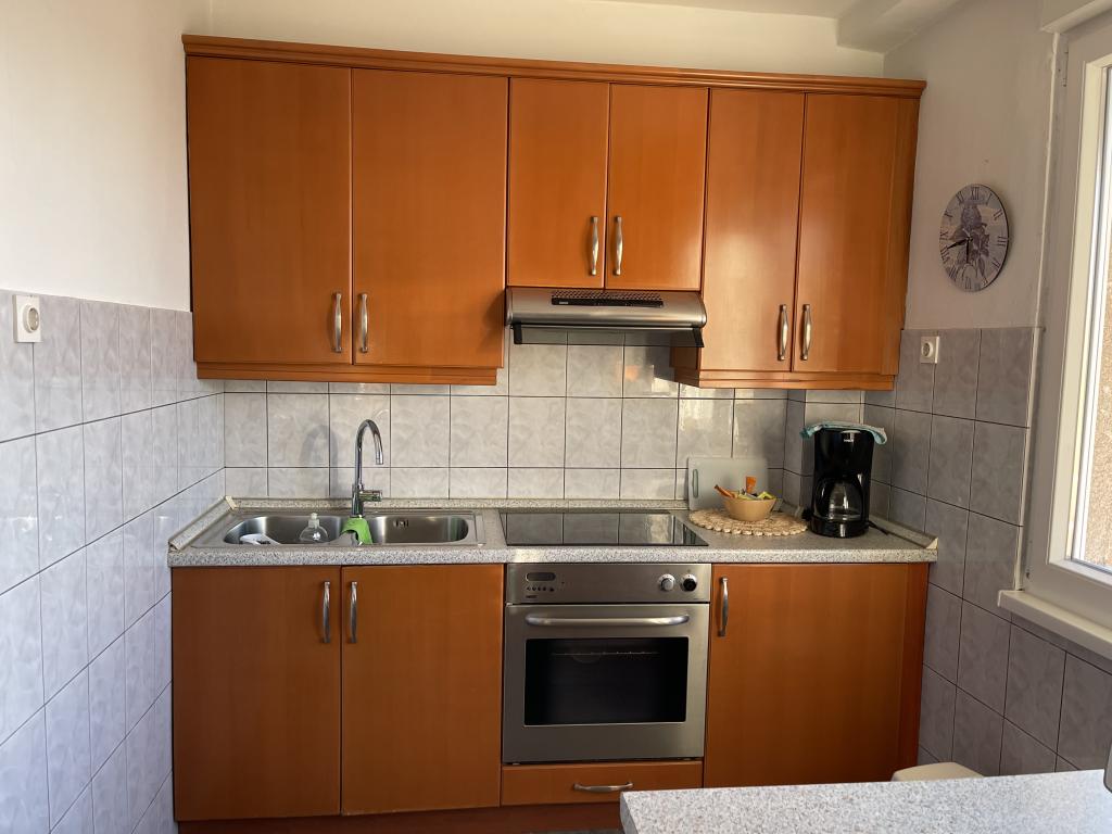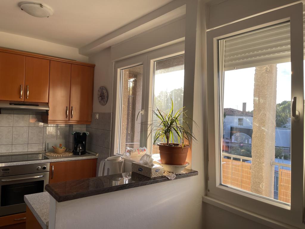 L'appartement est situé à proximité du centre ville et de la plage, vue mer, au 3ème étage. La superficie du logement est de 60m2, il se compose de 2 chambres, l'une avec 2 lits séparés / 90X200/, et l'autre avec un lit double / 160X200/. Dans le salon, il y a un canapé pour la cinquième personne. Cuisine équipée : micro-onde, cafetière, bouilloire, four. La salle de bain dispose d'une douche et d'une machine à laver, le salon et une chambre ont accès à la terrasse.Le prix de la location comprend le linge de lit, les serviettes, le WI-FI, la taxe de séjour