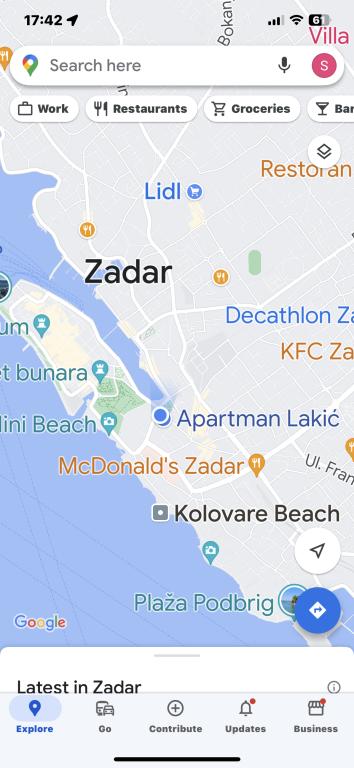 Avec l'arrivée de Zadar nous avons eu l'aide de garer la voiture pour un parking gratuit. L'appartement nous avons aimé parce qu'il a été meublé avec goût. Nous a impressionné avec sa vue depuis le balcon sur lequel le plaisir sûr à asseoir et boire du café. Comme nous étions en Avril pour quelque chose que nous avions froid. La cuisine a tout même les petites choses que vous avez besoin. Tout est soigné et propre et la chambre était satisfaisante. Le centre commercial se trouve à proximité. Et toutes les autres destinations pour le tourisme, ces sites ne sont pas loin et vous pouvez les visiter à pied.