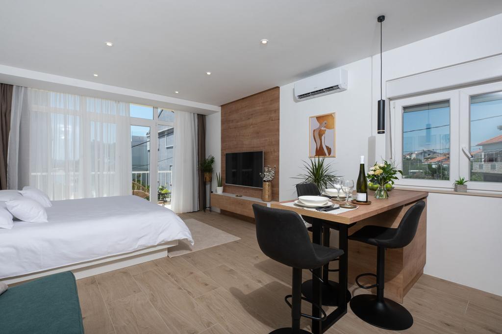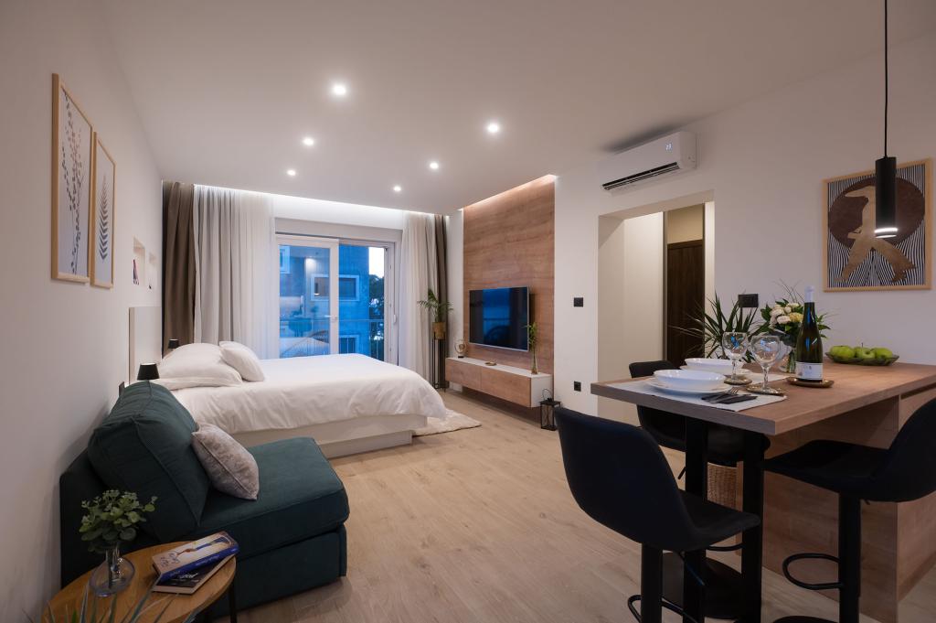 Notre séjour dans cet appartement a été vraiment extraordinaire. L'emplacement est parfait - situé dans un endroit calme juste à côté de la mer et la distance du centre n'est qu'à une demi-heure d'une agréable promenade le long de la côte. L'appartement est impeccablement propre et équipé de tout ce dont vous avez besoin pour passer un agréable séjour. Les hôtes sont extrêmement sympathiques et arrangeants et nous ont donné d'excellents conseils sur ce qu'il faut visiter et où manger. Nous tenons particulièrement à féliciter le propriétaire, qui est merveilleux et avec qui il était extrêmement facile de communiquer. Nous avons le plus apprécié nous asseoir sur le balcon et boire du café le matin avec une vue magnifique sur la mer. Il y a un petit magasin à proximité, à seulement quelques minutes à pied, et Lidl est à environ 20 minutes à pied. En outre, à proximité immédiate se trouvent deux petites plages accessibles en dix minutes à pied, ainsi que plusieurs restaurants et cafés où vous pourrez prendre un repas ou un café. Dans l’ensemble, c’était l’hébergement idéal pour des vacances reposantes et nous le recommandons vivement à tous ceux qui recherchent un séjour paisible et agréable au bord de la mer.