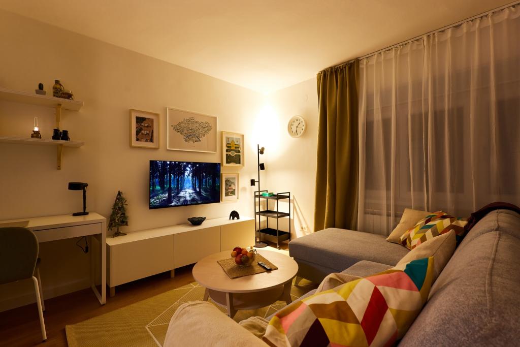 Très agréablement décoré, équipé de tout ce dont vous pourriez avoir besoin, propre, hôte pour un accord clair. Tout ce que l'on peut attendre d'un bon appartement à louer. Et oui, garez-vous !