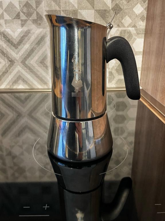 Café varié, crème à café, thés, sel, sucre, épices de base, ustensiles de cuisine complets pour un long séjour, cafetière, micro-ondes, blender, grille-pain, bouilloire, cafetière Bialetti (Moka), four, réfrigérateur, congélateur, sèche-cheveux, lave-linge, wifi, chauffage central, climatisation, détecteur de fumée, parking privé sécurisé…