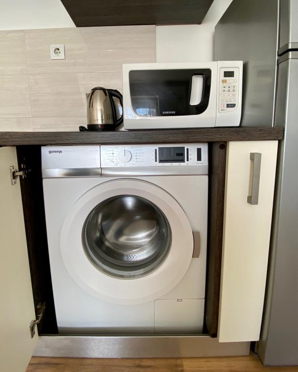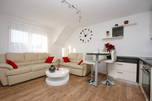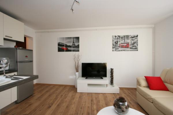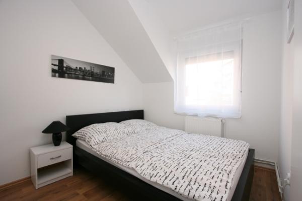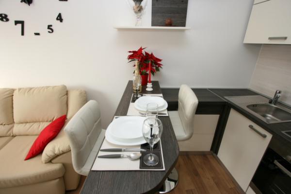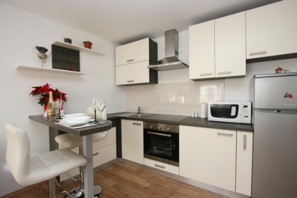 Cordialement, Appartement récemment rénové à louer, une chambre pour 4 personnes, soigné, confortable, joliment et modernement meublé, dans un quartier calme au 2ème étage d'un immeuble résidentiel. L'appartement se compose d'une chambre avec un lit double pour 2 personnes, d'un séjour avec un canapé deux places et un canapé lit pour 2 personnes, d'une cuisine, d'un couloir et d'une salle de bain. L'appartement est entièrement équipé avec : internet, climatisation, télévision par câble, four, micro-ondes, réfrigérateur, lave-linge, etc. Il se trouve à seulement 3-4 minutes en voiture du centre-ville. À 200 mètres de l'appartement se trouve un arrêt de bus où la ligne de bus (118) dessert le centre-ville. Il y a un parking gratuit dans la rue devant le bâtiment. Accueillir!
