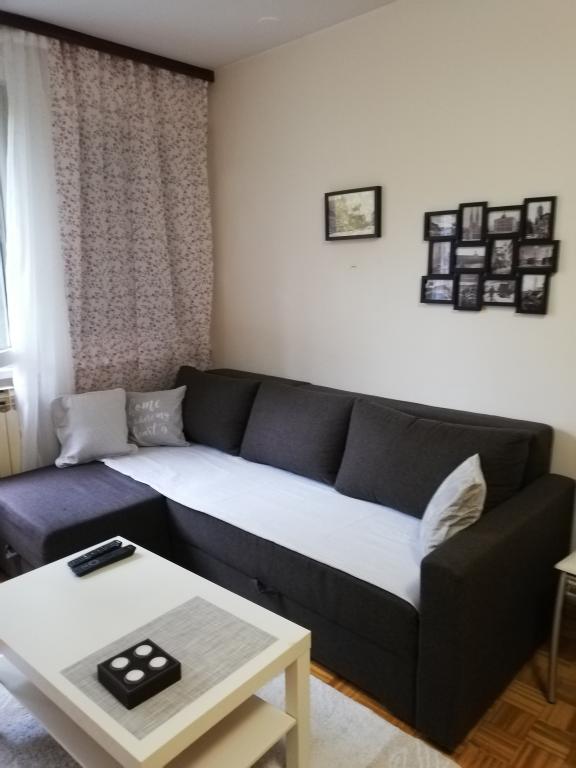 Appartement de 40m2 situé dans un immeuble résidentiel, pouvant accueillir 1 à 4 personnes. Il est entièrement équipé (télévision par câble, Internet sans fil, climatisation) joliment meublé. Il vous suffit d'apporter de la bonne volonté avec vous, tout le reste est dans l'appartement. Dans le bâtiment il y a une pharmacie, un magasin, une boulangerie, des cafés. L'appartement se trouve à 3 minutes en voiture de la Foire de Zagreb, du Musée d'art contemporain, de l'Avenue Mall et de l'Hippodrome, du lac Bundek, de l'Arena Zagreb et de la salle de concert Vatroslav Lisinski qui ne sont pas loin et à 10 minutes en voiture du centre-ville. , gare ferroviaire ou routière. Les transports en commun sont à 15 mètres du bâtiment. Il y a un parking gratuit devant le bâtiment. Si vous nous rendez visite une fois, nous sommes sûrs que vous serez toujours heureux de venir chez nous. La grille tarifaire dépend du nombre de personnes, de la durée du séjour et de la date du séjour.