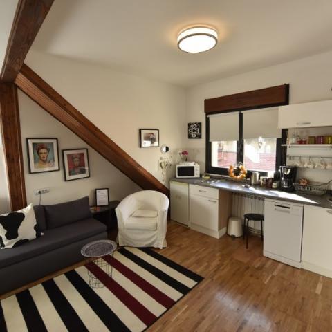 Les appartements sont situés dans une cour située dans le centre de Zagreb dans un emplacement idéal. Nouveau, moderne et entièrement équipé. Les appartements disposent d'une chambre séparée avec un lit double 140x200 et d'un lit gigogne pour 2 personnes dans le salon. Ils ont une cuisine entièrement équipée (réfrigérateur, plaque de cuisson, lave-vaisselle, micro-ondes, grille-pain, bouilloire, cafetière, sel, café, thé, ...), salle à manger, salon et salle de bains avec serviettes et sèche cheveux. L'un des appartements dispose d'une machine à laver. Chaque appartement dispose d'une télévision par satellite à écran LED, d'une connexion Wi-Fi gratuite et du chauffage central. climatiseur, fer à repasser ... Ils sont situés les uns par rapport aux autres, ce qui les rend idéaux pour la location de familles comptant un grand nombre de membres, etc. Dans les environs immédiats, vous trouverez la plupart des monuments culturels et des sites touristiques de la ville de Zagreb. Proche de la gare et de la gare routière. HNK distant de 250 m, place Jelačić à 600 m, jardin botanique à 250 m, ville haute à 300 m ... Magasin Bizina à 50 m.
