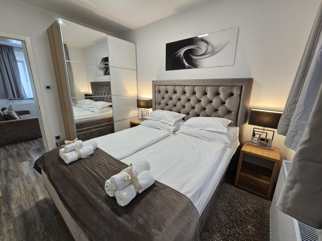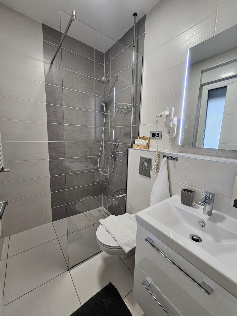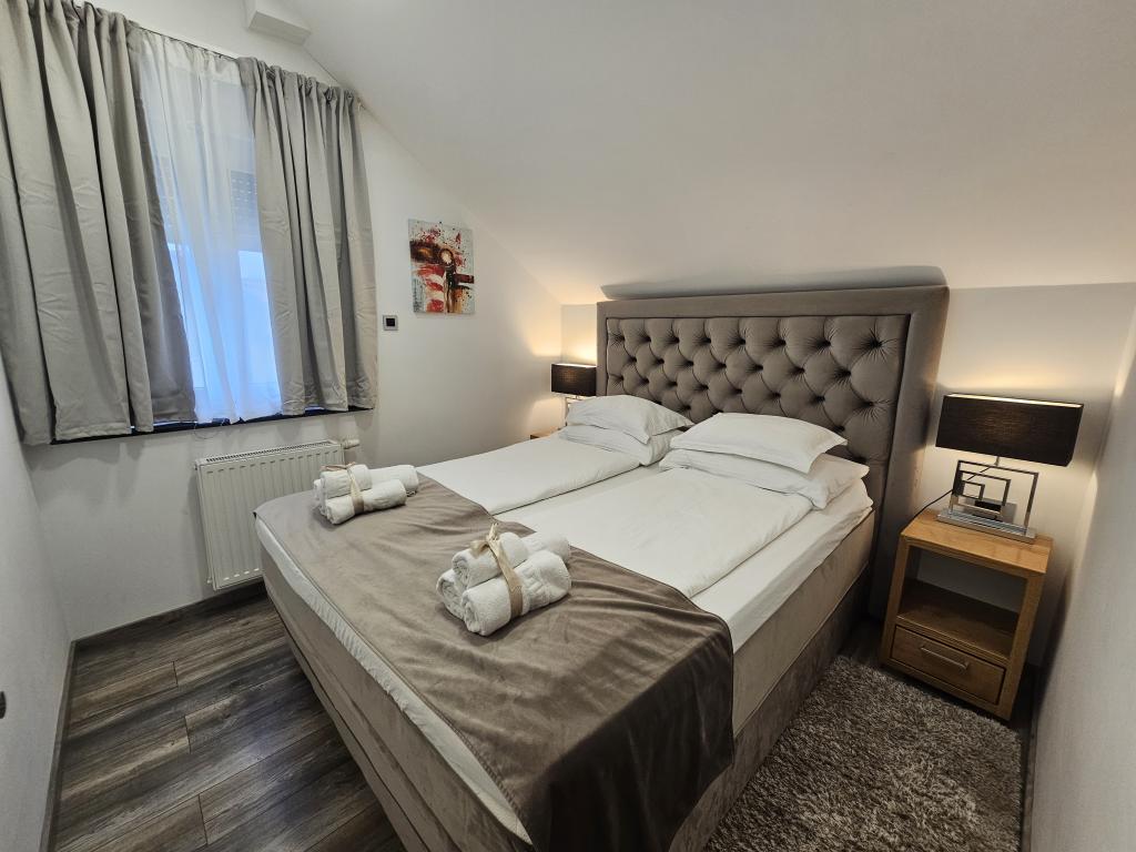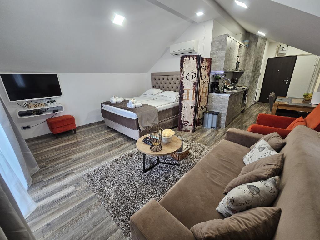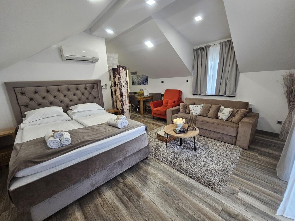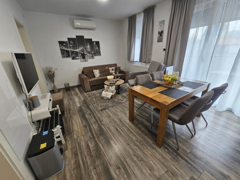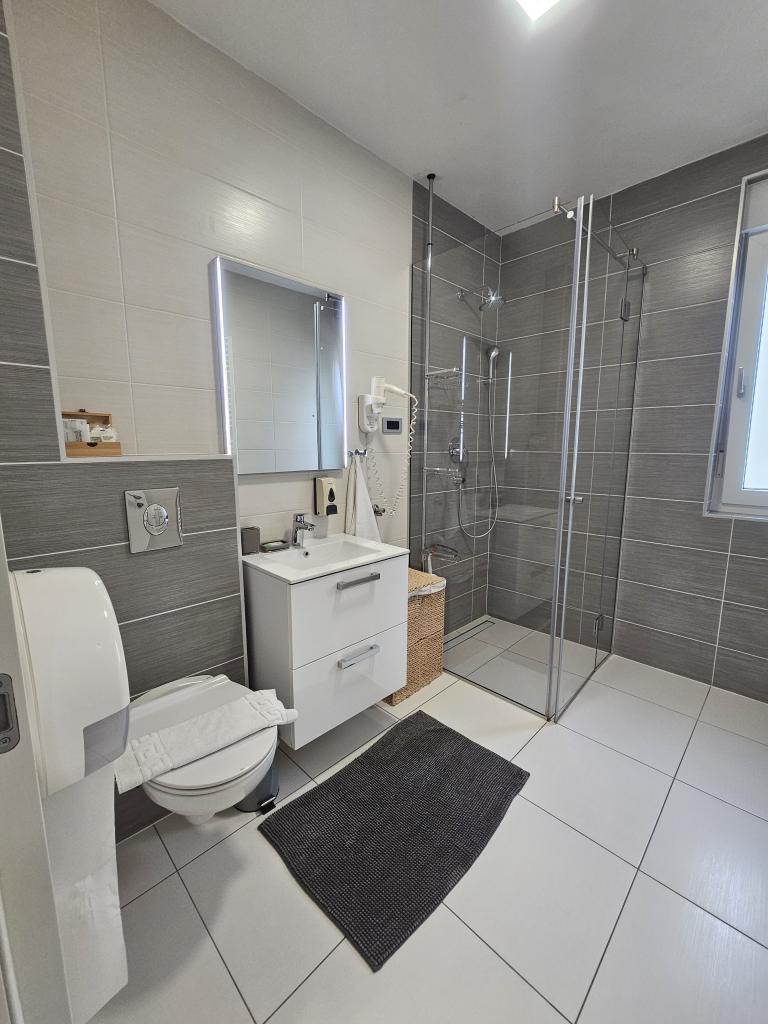 La Villa Agram est située dans une rue calme (adresse : Poljanička 2a) dans le vieux quartier Trešnjevka de Zagreb. L'installation a été entièrement nouvellement construite et a ouvert ses portes en 2018. Nos clients bénéficient d'un parking gratuit à l'intérieur et devant le bâtiment. La Villa Agram comprend 5 appartements luxueusement meublés. Le magasin le plus proche se trouve à 300 m du bâtiment, tandis que les restaurants et cafés sont à environ 500 m. Le rond-point de Ljubljanica se trouve à environ 800 m de la Villa Agram, vous pourrez donc vous rendre au centre ou dans une autre partie de Zagreb en tramway ou en bus. Tram n°. La ligne 12, qui mène directement à Trg ban J. Jelačić, arrive à destination en seulement 19 minutes. Chaque invité est accueilli avec du linge de lit fraîchement lavé et propre et un ensemble de serviettes. Les salles de bains sont entièrement équipées de tous les accessoires de salle de bain (papier toilette, savon liquide et dur, gel douche, après-shampooing, bonnet de douche, chaussons de bain, peigne, nécessaire de maquillage) et d'un sèche-cheveux mural.