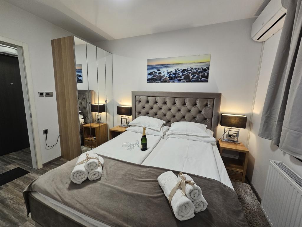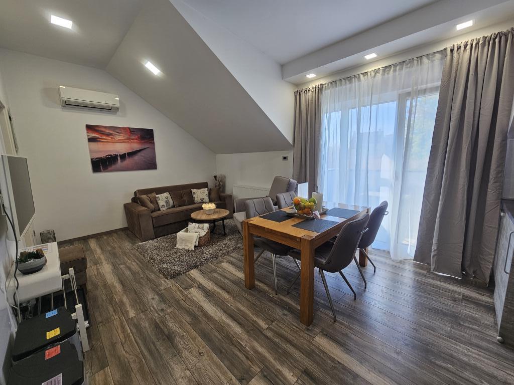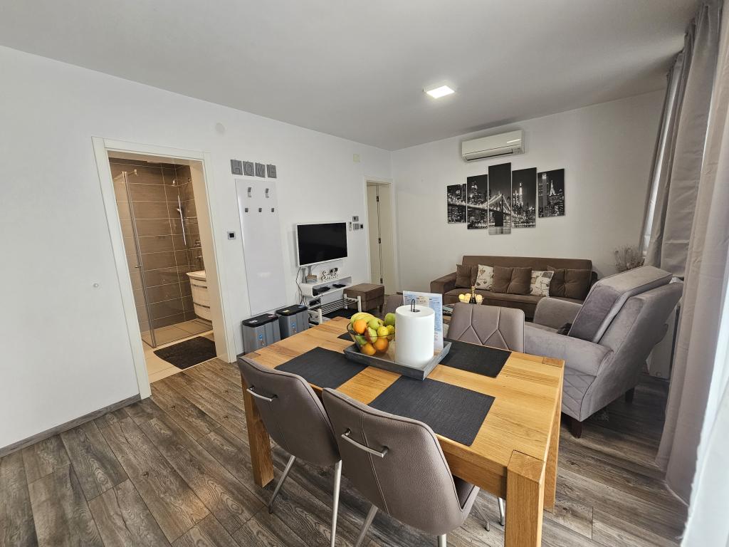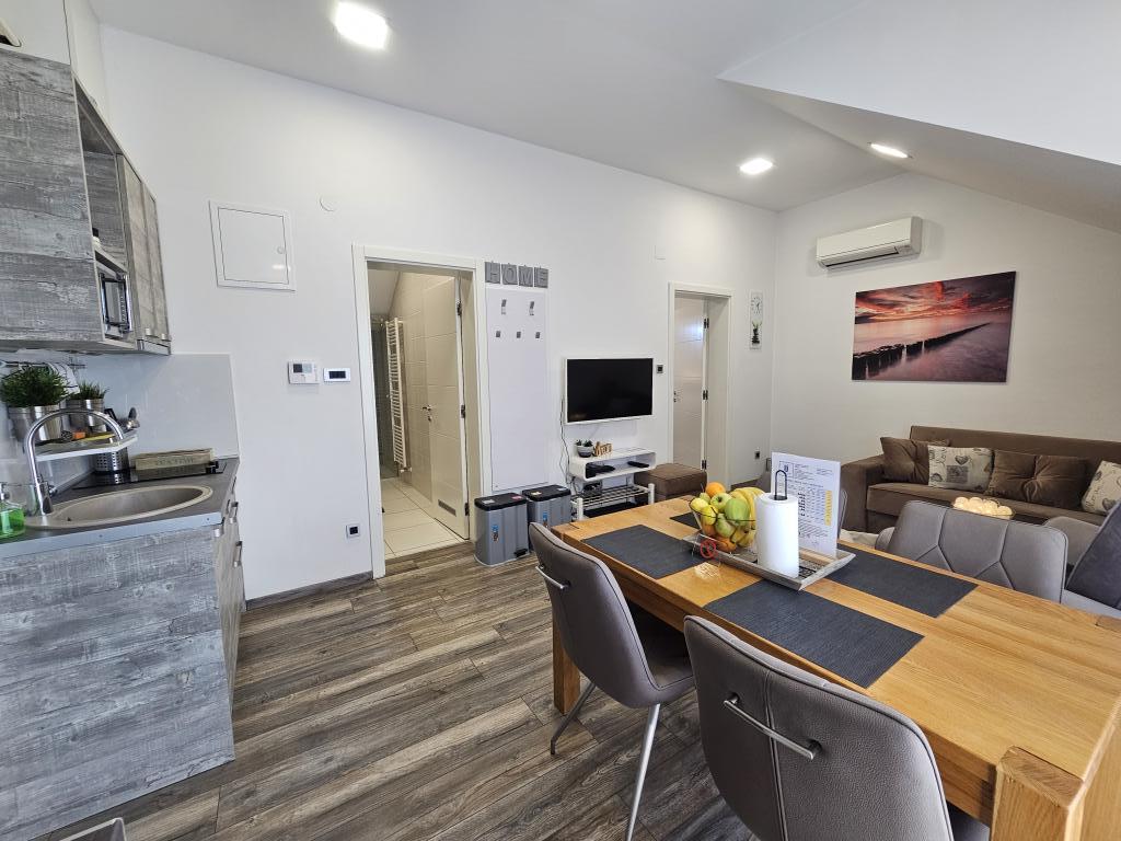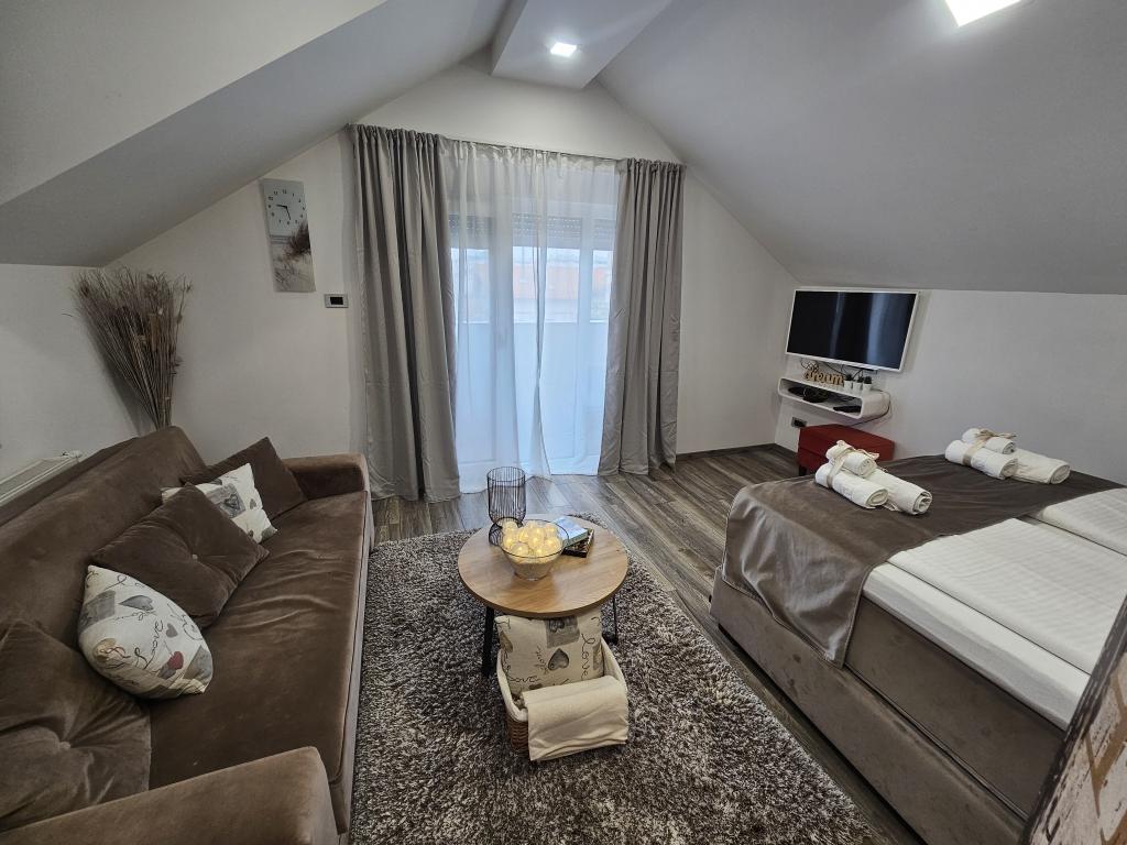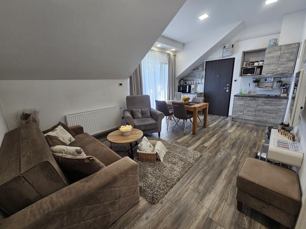 La Villa Agram est située dans une rue calme (adresse : Poljanička 2a) dans le vieux quartier Trešnjevka de Zagreb. L'installation a été entièrement nouvellement construite et a ouvert ses portes en 2018. Nos clients bénéficient d'un parking gratuit à l'intérieur et devant le bâtiment. La Villa Agram comprend 5 appartements luxueusement meublés. Le magasin le plus proche se trouve à 300 m du bâtiment, tandis que les restaurants et cafés sont à environ 500 m. Le rond-point de Ljubljanica se trouve à environ 800 m de la Villa Agram, vous pourrez donc vous rendre au centre ou dans une autre partie de Zagreb en tramway ou en bus. Tram n°. La ligne 12, qui mène directement à Trg ban J. Jelačić, arrive à destination en seulement 19 minutes. Chaque invité est accueilli avec du linge de lit fraîchement lavé et propre et un ensemble de serviettes. Les salles de bains sont entièrement équipées de tous les accessoires de salle de bain (papier toilette, savon liquide et dur, gel douche, après-shampooing, bonnet de douche, chaussons de bain, peigne, nécessaire de maquillage) et d'un sèche-cheveux mural.