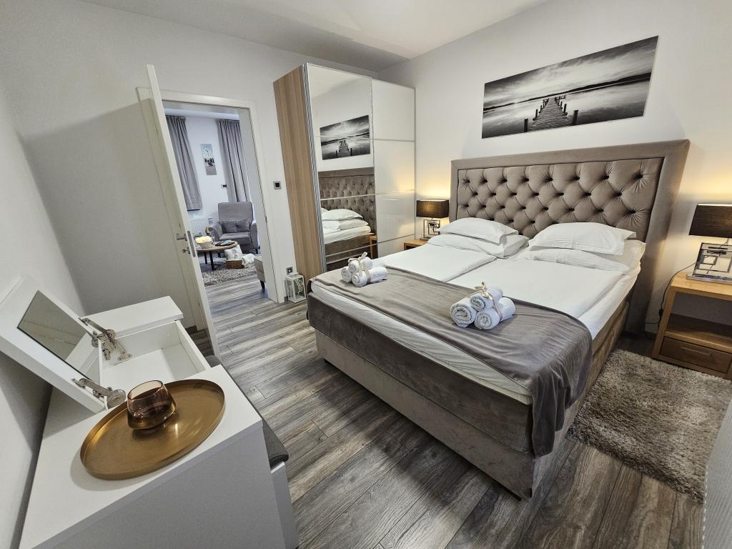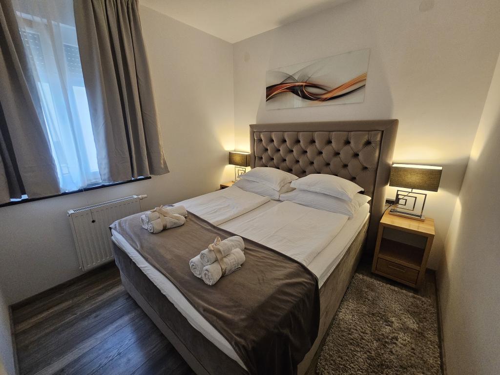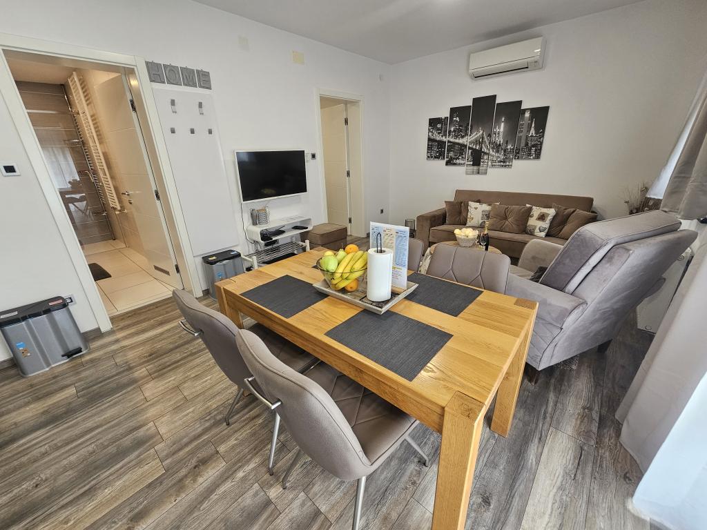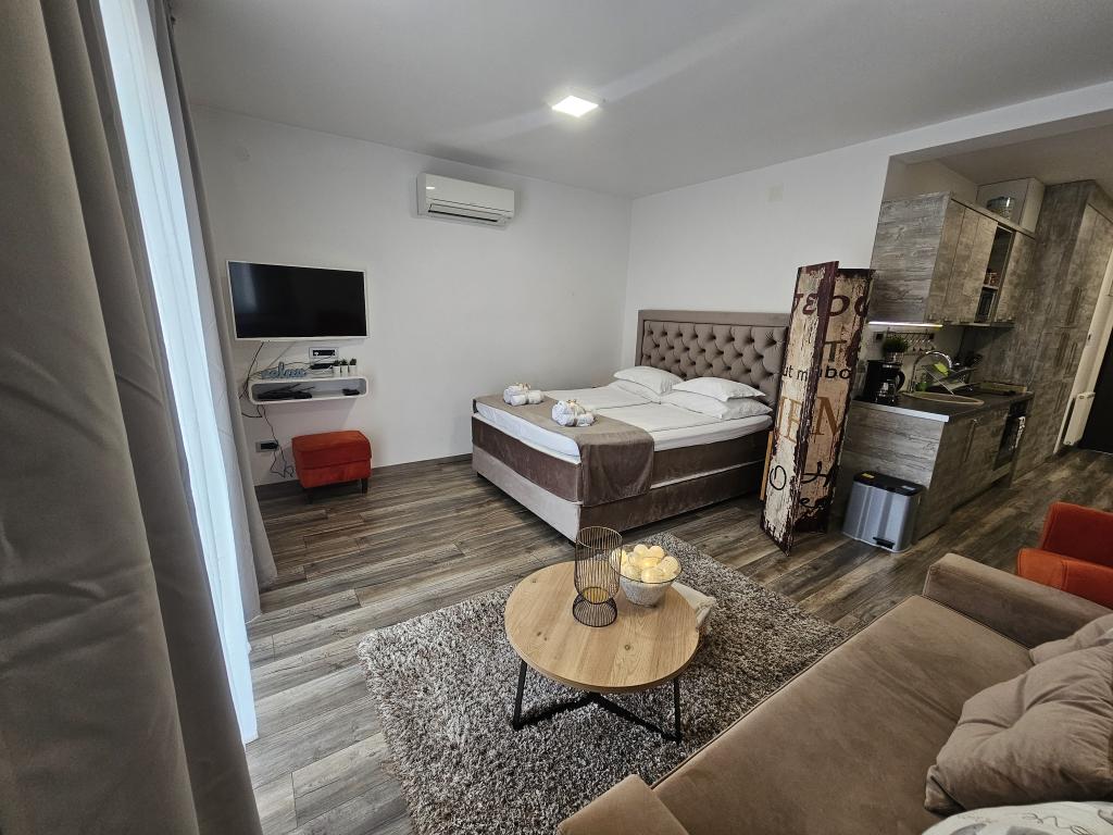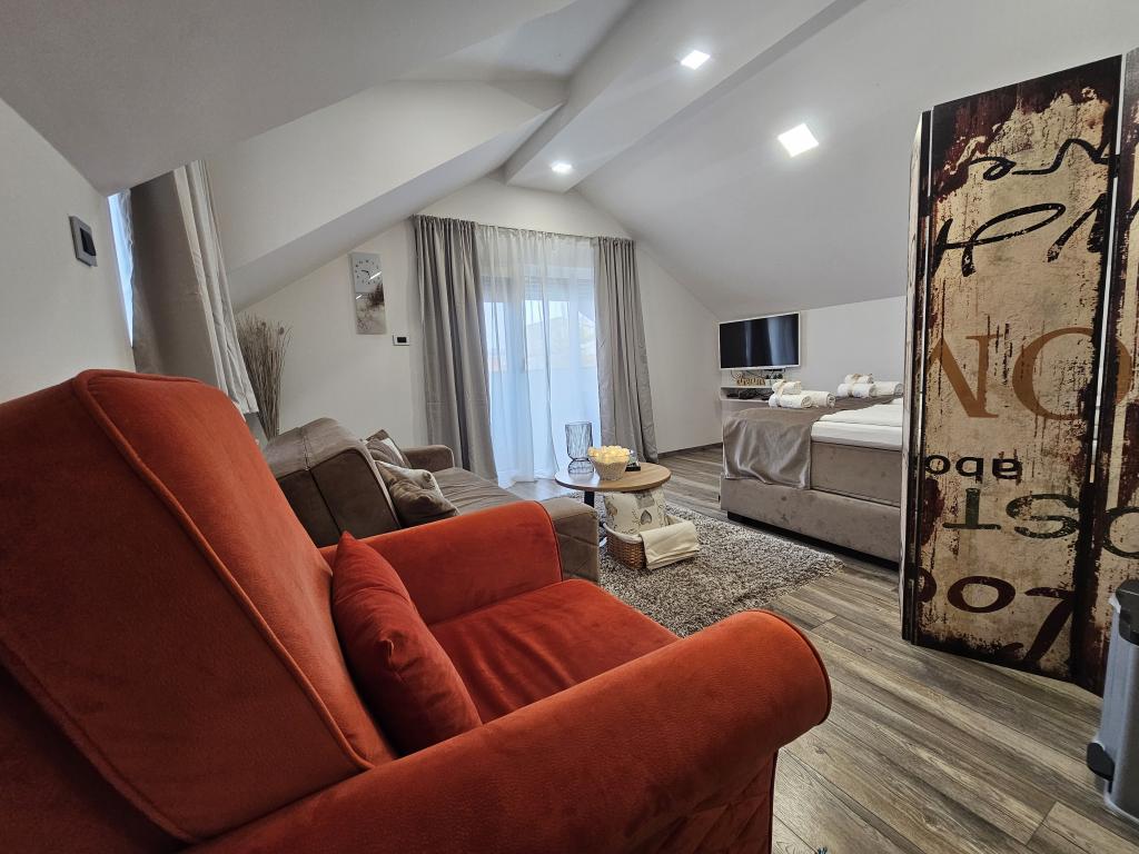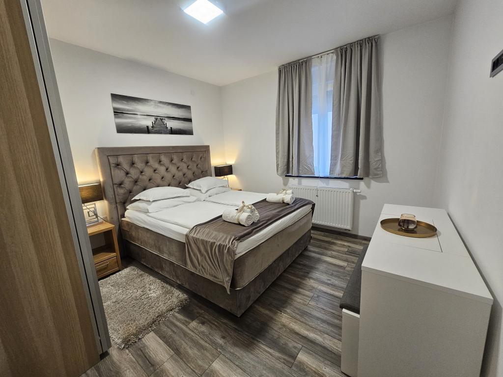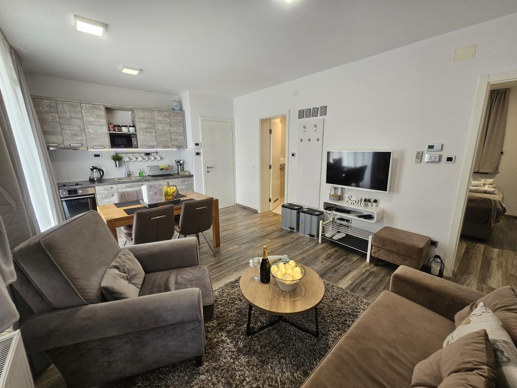 La Villa Agram est située dans une rue calme (adresse : Poljanička 2a) dans le vieux quartier Trešnjevka de Zagreb. L'installation a été entièrement nouvellement construite et a ouvert ses portes en 2018. Nos clients bénéficient d'un parking gratuit à l'intérieur et devant le bâtiment. La Villa Agram comprend 5 appartements luxueusement meublés. Le magasin le plus proche se trouve à 300 m du bâtiment, tandis que les restaurants et cafés sont à environ 500 m. Le rond-point de Ljubljanica se trouve à environ 800 m de la Villa Agram, vous pourrez donc vous rendre au centre ou dans une autre partie de Zagreb en tramway ou en bus. Tram n°. La ligne 12, qui mène directement à Trg ban J. Jelačić, arrive à destination en seulement 19 minutes. Chaque invité est accueilli avec du linge de lit fraîchement lavé et propre et un ensemble de serviettes. Les salles de bains sont entièrement équipées de tous les accessoires de salle de bain (papier toilette, savon liquide et dur, gel douche, après-shampooing, bonnet de douche, chaussons de bain, peigne, nécessaire de maquillage) et d'un sèche-cheveux mural.
