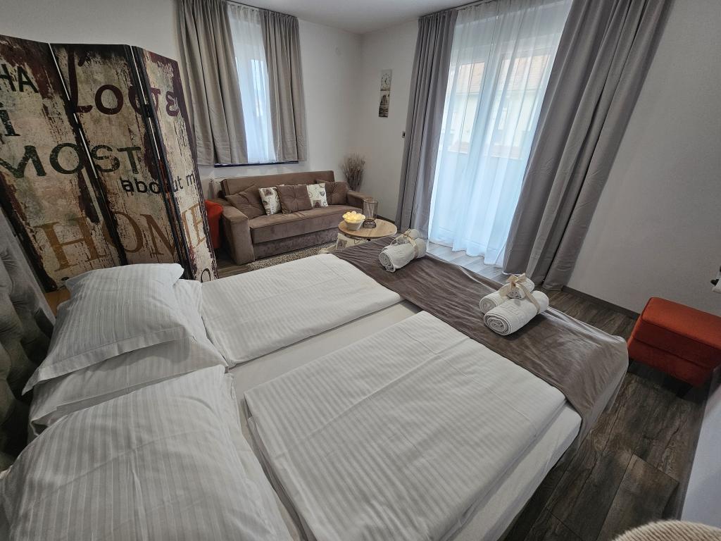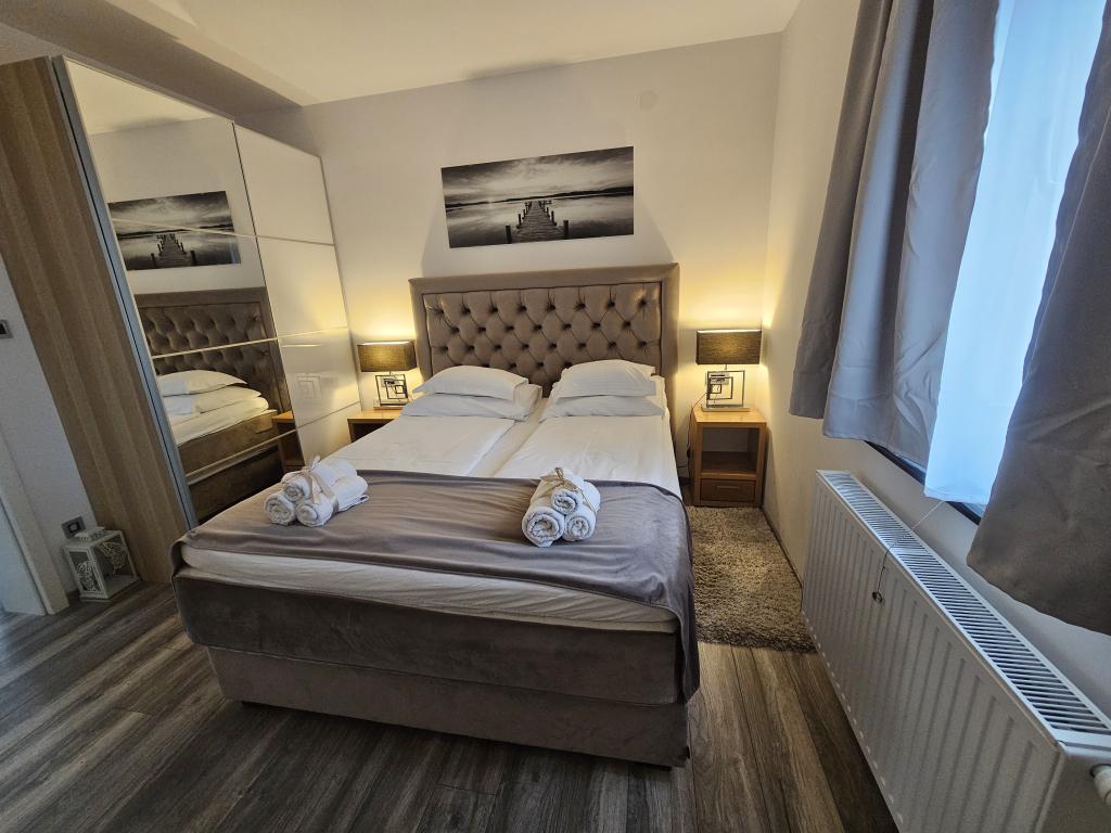 En savoir plus Unités d'hébergementArrivée : de 15h00 à 23h00 Départ : de minuit à 10h00 Les enfants jusqu'à 3 ans séjournent gratuitement dans l'appartement. Le paiement s'effectue en espèces ou par versement sur un compte bancaire, et lors de la réservation il est parfois nécessaire de verser un acompte d'un montant de 20% du prix total de la location. Les animaux ne sont malheureusement pas admis. Le séjour de grands groupes d'invités dans l'établissement est autorisé, mais pas à des fins de célébrations ou de fêtes. Il est obligatoire de respecter le règlement intérieur (calme après 23h00) et les clients sont priés de communiquer l'heure prévue d'arrivée à l'hébergement et de préciser s'ils viennent en voiture. Les vendredis et samedis, le nombre minimum de nuits est de 2. Pour les réservations directes, nous accordons une réduction, et en cas de séjours plus longs, une réduction supplémentaire.