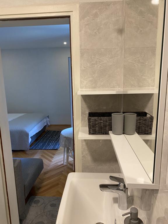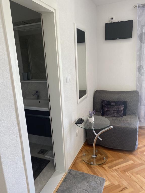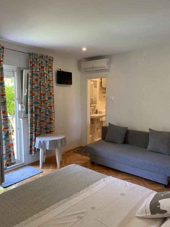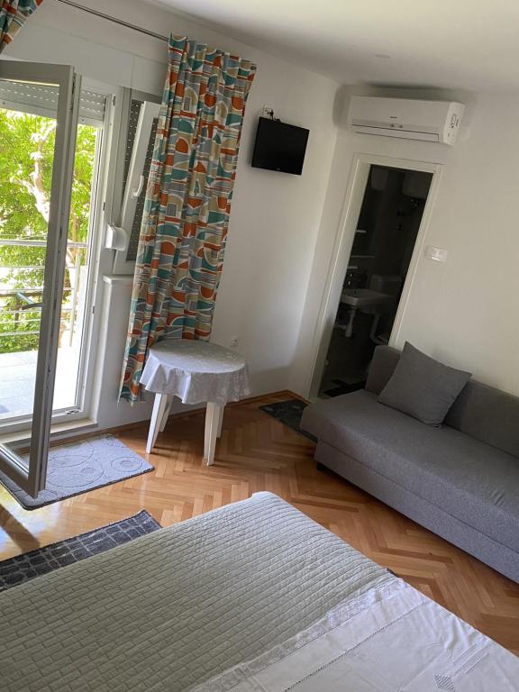 Les hôtes hospitaliers et joyeux vous accueillent chaleureusement dans l'atmosphère agréable d'une maison familiale située dans l'une des plus belles régions de la Riviera de Makarska. Située à 100m du centre-ville de la célèbre ville dalmate et en face de l'ancien monastère franciscain, cette propriété confortable offre tous les ingrédients pour des vacances reposantes : une chambre propre et spacieuse, cuisine équipée, climatisation et TV, terrasse et parking sécurisé. place de parking. De belles plages de galets, à seulement 2 minutes du logement, une offre gastronomique variée et un climat très agréable mettent fin à cette i.