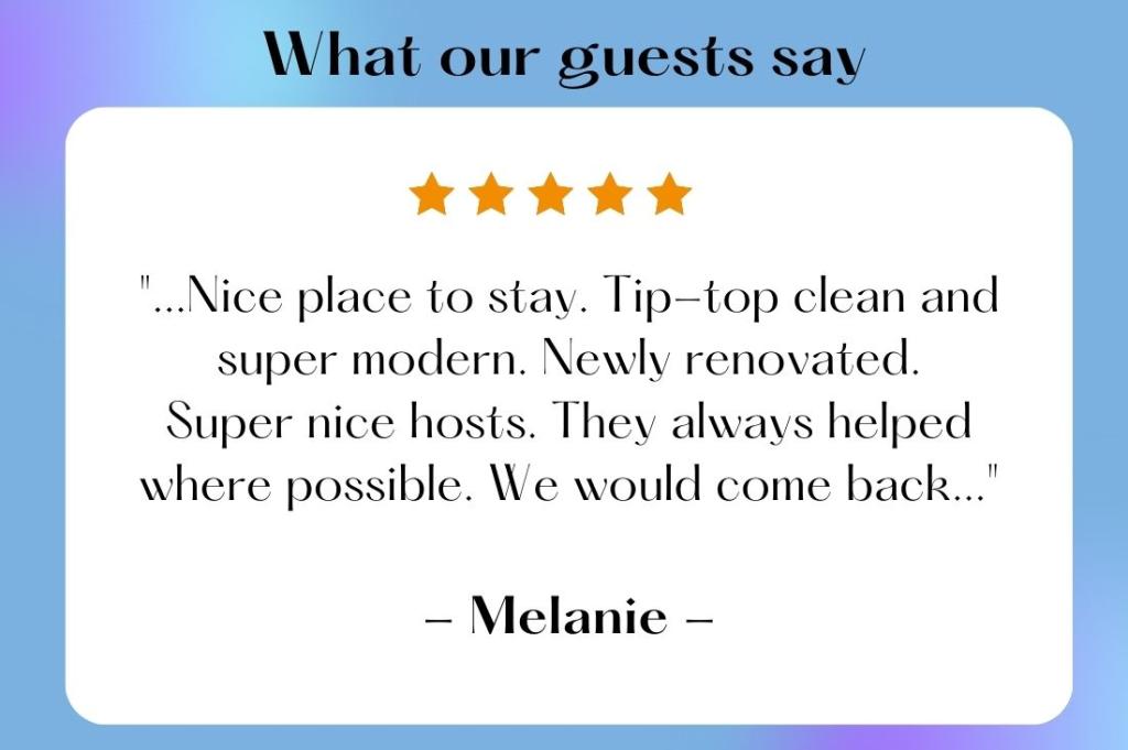 Cher Eva, je vous remercie beaucoup pour votre examen de nos appartements. Ce fut un plaisir de vous compter parmi nos invités. Cordialement famille Ramljak