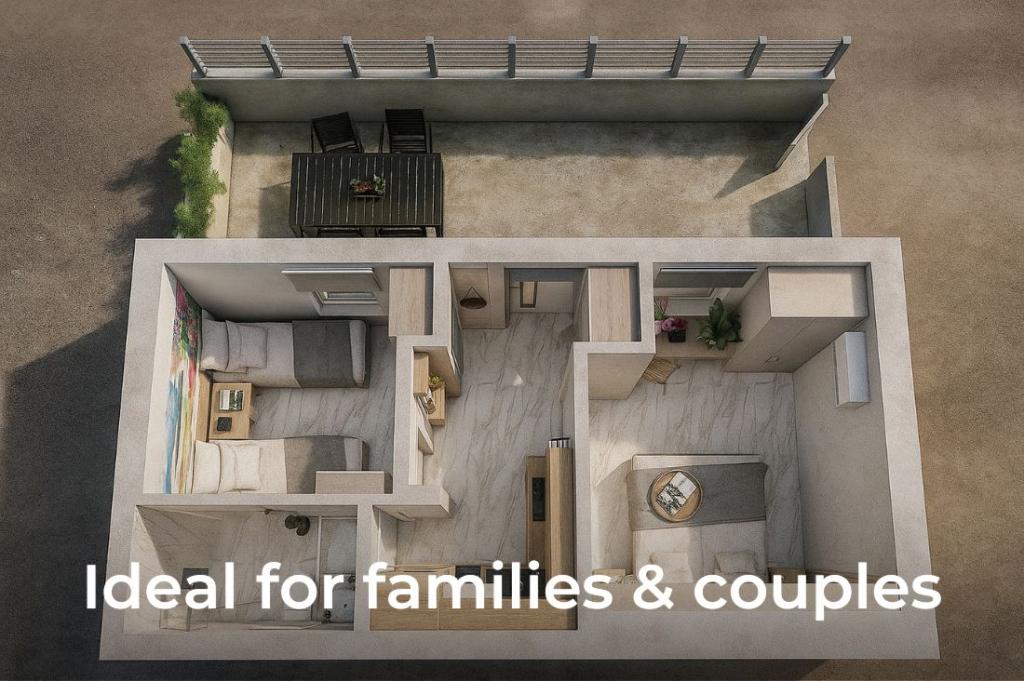 Les appartements Marula, récemment construits et dotés d'équipements modernes, sont situés dans une belle maison familiale, à quelques minutes à pied de la plage, des commerces et des restaurants. Chaque appartement peut accueillir jusqu'à 4 personnes, avec la possibilité d'ajouter un lit d'appoint pour une cinquième personne. Les appartements comprennent une chambre double, un séjour avec cuisine équipée, une salle de bains et une terrasse ou un balcon. Ils sont climatisés et équipés d'une télévision par satellite, d'une connexion Wi-Fi et d'un parking sécurisé. De plus, vous bénéficiez d'un accès gratuit à des vélos, un barbecue et une machine à laver.
