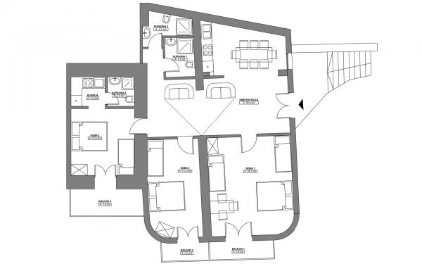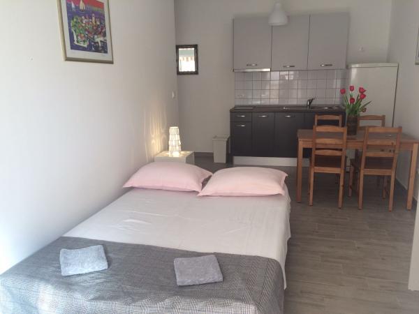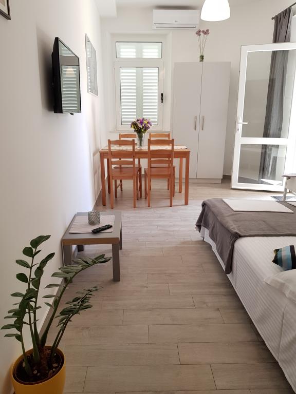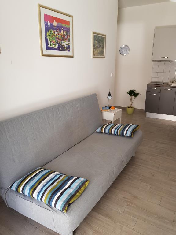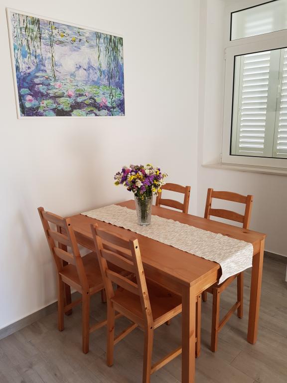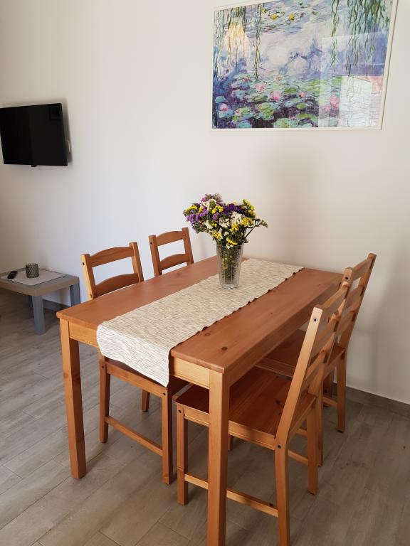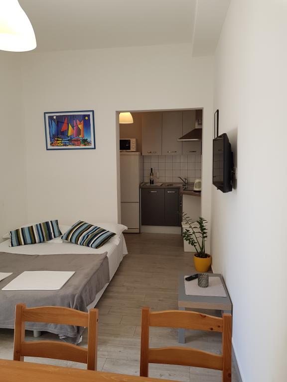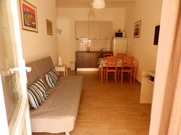 L'appartement A2 2 se situe au rez-de-chaussée d'une maison familiale. Il comprend une chambre avec un lit (160x200cm), un séjour avec un canapé (160x200cm), une cuisine, une salle de bains et une terrasse. L'appartement A2 3 se situe également au rez-de-chaussée d'une maison familiale. Il comprend une chambre avec un lit (160x200cm) et un lit (90x200cm), un séjour avec un canapé (160x200cm), une cuisine, une salle de bains et une terrasse. Les appartements sont entièrement rénovés. L'accès à la terrasse est facile pour les poussettes et les vélos (seulement trois marches). La rue est calme et piétonne. L'appartement A-10 1 (A-8 3) se situe au premier étage. Il comprend une chambre quadruple, deux chambres triples, deux cuisines, un grand hall, trois salles de bains, trois balcons et une terrasse à l'entrée, à 40 m de la plage. L'entrée est indépendante de la rue piétonne. Les deux appartements disposent d'une place de parking sécurisée et d'une connexion internet haut débit.