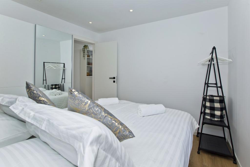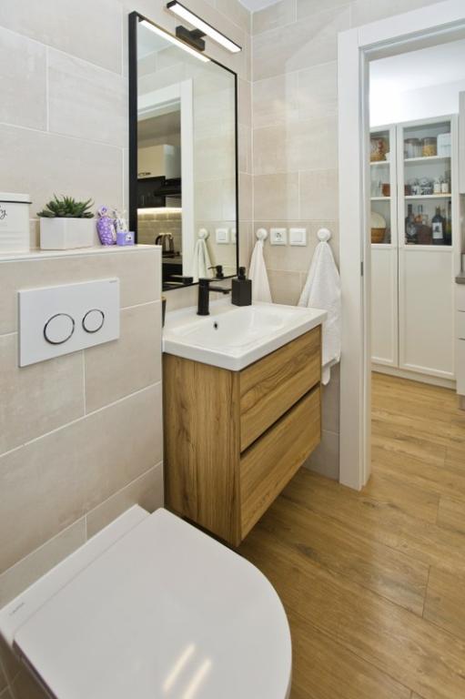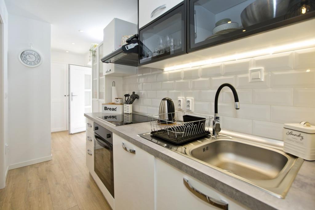 La maison se compose d'un appartement de 30 m² et d'une cour de 20 m². L'appartement comprend une chambre, une salle de bains, un séjour avec cuisine ouverte et un petit débarras. La chambre offre une belle vue et est équipée d'un lit double sous lequel se trouve un coffre à bagages de 160 x 200 cm. On y trouve également une grande armoire à portes coulissantes, deux tables de chevet avec lampes et la climatisation. La salle de bains est équipée d'une douche, d'un radiateur, d'un ventilateur, d'un lavabo et de toilettes. Le séjour, baigné de lumière grâce à sa fenêtre, communique avec la cuisine. Le séjour est climatisé et meublé d'un canapé, d'une télévision et d'une table avec chaises. La cuisine est équipée d'un four, de plaques de cuisson, d'un lave-vaisselle, d'un réfrigérateur, d'un micro-ondes, d'une bouilloire et d'un grille-pain. Le petit débarras contient un lave-linge, un chauffe-eau et un meuble à chaussures. La cour, aménagée pour la détente et les moments de convivialité, est équipée d'un transat, d'un parasol, de chaises et d'un salon de jardin. Cet appartement est situé au premier étage de la maison familiale et donne sur une grande cour.