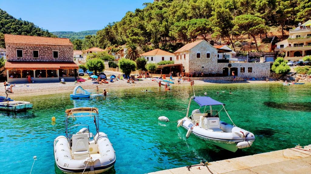 Les appartements Zaninović sont situés dans la magnifique baie de Vela Stiniva, qui est située sur le côté nord de l'île de Hvar. Il se trouve à 3 km par une route goudronnée de Zastražišće. Une mer propre, une grande plage de galets et une nature intacte sont des conditions idéales pour de vraies vacances. Il y a de nombreux sentiers d'escalade, un terrain de football et de basket dans la baie.