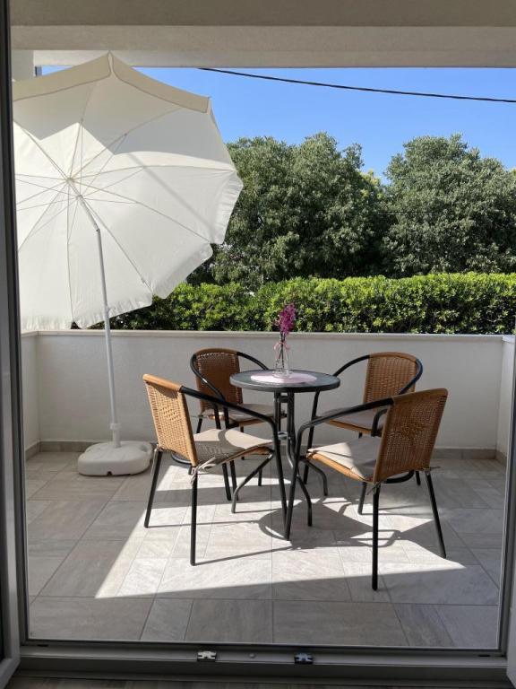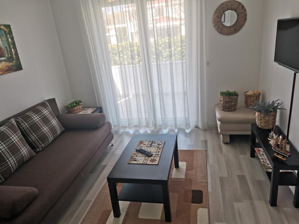 Tout d'abord, nous avons été très bien accueillis par le propriétaire, plus que poli ! Les enfants ont été accueillis avec des cadeaux surprises. Pour la première fois depuis le voyage, nous avions dans le réfrigérateur des jus de fruits, de l'eau, de la bière et du lait. Un bol de fruits était également préparé, ainsi qu'une machine à café avec capsules, une bouteille de vin, deux pots de Nutella, des céréales, des épices et de l'huile de cuisson, une friteuse à air et une cuisine entièrement équipée avec tout le nécessaire. Le Wi-Fi et Netflix sont disponibles sur la télévision. L'utilisation de la climatisation est gratuite, contrairement à d'autres équipements. L'appartement est neuf et joliment décoré. Vous disposez d'un petit jardin à l'arrière pour jouer et d'un coin barbecue si vous le souhaitez. Vous disposez également d'une place de parking privée. L'appartement est situé à environ 15 minutes à pied de la plage, idéale pour les enfants grâce au sable fin et à la mer peu profonde, ce qui leur permet d'être autonomes quel que soit leur âge. Vous pouvez également vous rendre à la plage de Zaton à environ 2 minutes en voiture si vous décidez d'aller à Zaton, comme nous. En bref, je recommande vivement ! Nous reviendrons sans hésiter l'année prochaine.