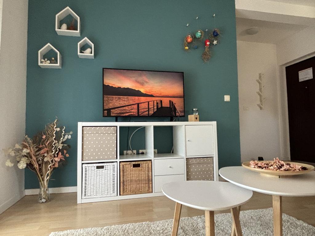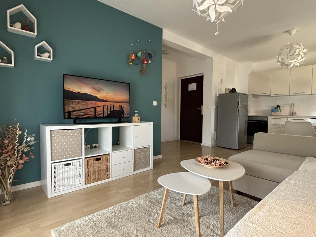 L'appartement est magnifique ! Décoration moderne, extrêmement soignée et spacieuse et tout est comme sur les photos. Un atout supplémentaire est la magnifique terrasse couverte où vous pourrez également profiter. Dans l'appartement, il y avait assez de serviettes, de papier toilette, de vaisselle, de vaisselle... Beaucoup de choses ne nous attendaient pas les années précédentes, ce qui nous a encore plus excités (comme le café, les épices, l'huile, le vinaigre, les essuie-tout, les essuie-tout , gels douche, lessive pour laver la vaisselle, lait, eau et fruits de bienvenue...) Bravo pour ça ! Les hôtes sont très gentils, extrêmement hospitaliers et arrangeants et font attention à chaque détail pour que les clients se sentent satisfaits et à l'aise. En outre, les plages et les commodités supplémentaires sont à proximité. Toutes les recommandations à ceux qui choisissent cet hébergement, en particulier aux familles avec enfants. Chers hôtes, nous avons vraiment apprécié nos vacances et vous remercions encore une fois pour votre merveilleuse hospitalité.