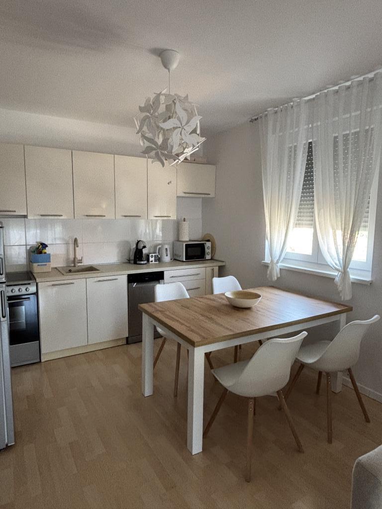 L'appartement familial se situe dans une maison familiale de quatre logements, dans un quartier calme de la ville. Situé au premier étage, il a été rénové au printemps 2022. Il se trouve à proximité immédiate de l'office de tourisme de Zaton, de commerces, d'une aire de jeux pour enfants, d'un bar et d'une boulangerie. Les plages de sable fin, idéales pour les familles avec enfants, sont accessibles en 15 minutes à pied ou en 1 minute en voiture. L'appartement comprend une chambre avec un lit double et un lit d'appoint, une salle de bains avec douche, une cuisine, un salon et une terrasse couverte. Vous y trouverez également une Smart TV, un micro-ondes, un grille-pain, un sèche-cheveux, un lave-linge et un barbecue. Un parking est disponible dans la cour de l'immeuble. Cet appartement est idéal pour une famille avec un ou deux enfants. Les photos publiées reflètent l'état actuel du logement. Si vous souhaitez obtenir des informations complémentaires ou des photos supplémentaires, n'hésitez pas à nous contacter.