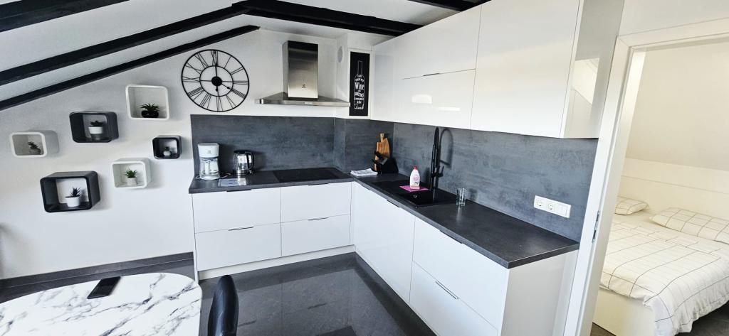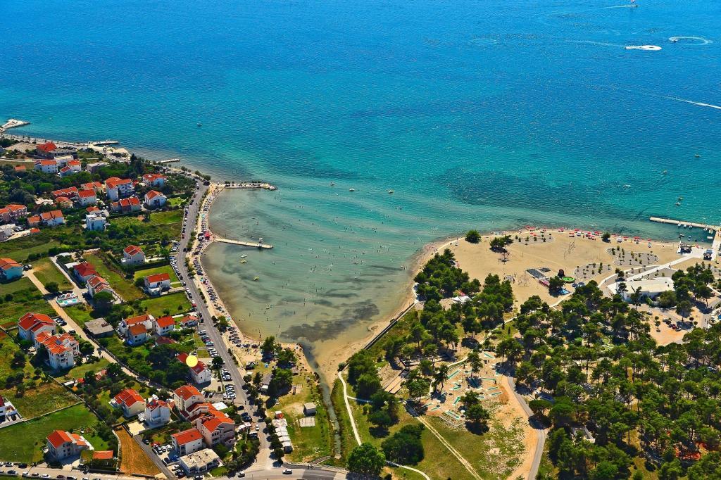 À proximité : - Complexe touristique Zaton (60 m) - Aire de jeux pour enfants (20 m) - Café (20 m) - Restaurant avec demi-pension (30 m) - Boulangerie (40 m) - Kiosques de plage (40 m) - Salle de sport extérieure (40 m) - Zadar (12 km) - Nin (1 km). La plage est équipée de douches, de cabines et de toilettes. Il est possible d’y louer des transats, des parasols, des pédalos et d’autres équipements. Dans un rayon de 100 km se trouvent les parcs nationaux de Paklenica, Kornati, des lacs de Plitvice, de Krka et du Velebit septentrional.