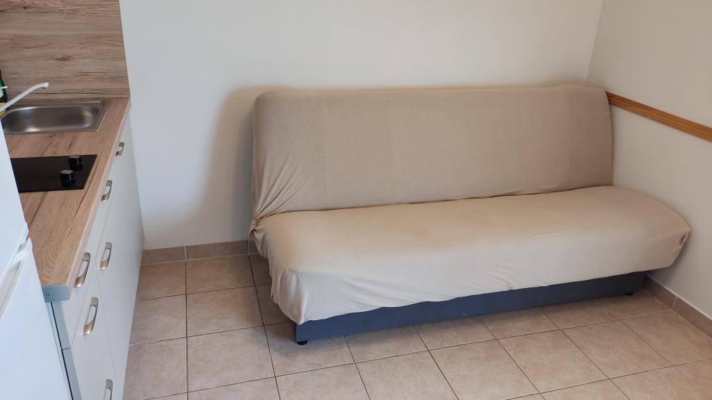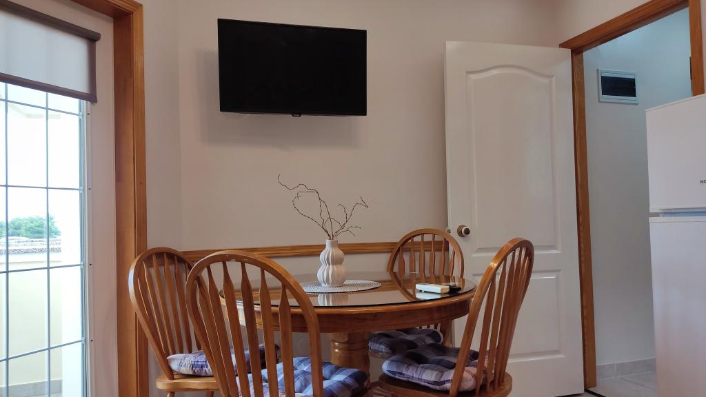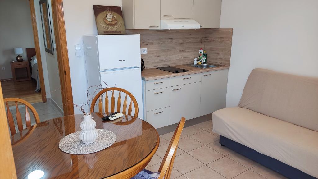 Nous étions logés dans une chambre 2+1. L'appartement était propre et parfumé. La mer directement de l'autre côté de la route. La vue directement sur la mer et le coucher de soleil ... la seule chose qui était un peu moins est le manque d'espace de stockage pour trois personnes, mais cela peut être géré. Et l'eau était terriblement difficile à régler - soit glacée soit chaude, mais ce ne sont vraiment que de petites choses. Le propriétaire était arrangeant. Sur demande, elle nous a également donné des serviettes supplémentaires sans frais supplémentaires ni aucun autre mot. .Il y a aussi une station balnéaire à proximité, qui propose des stands de restauration, etc. le soir. je recommande vraiment