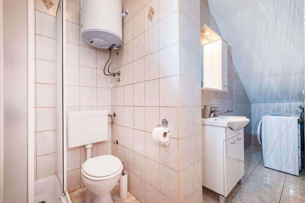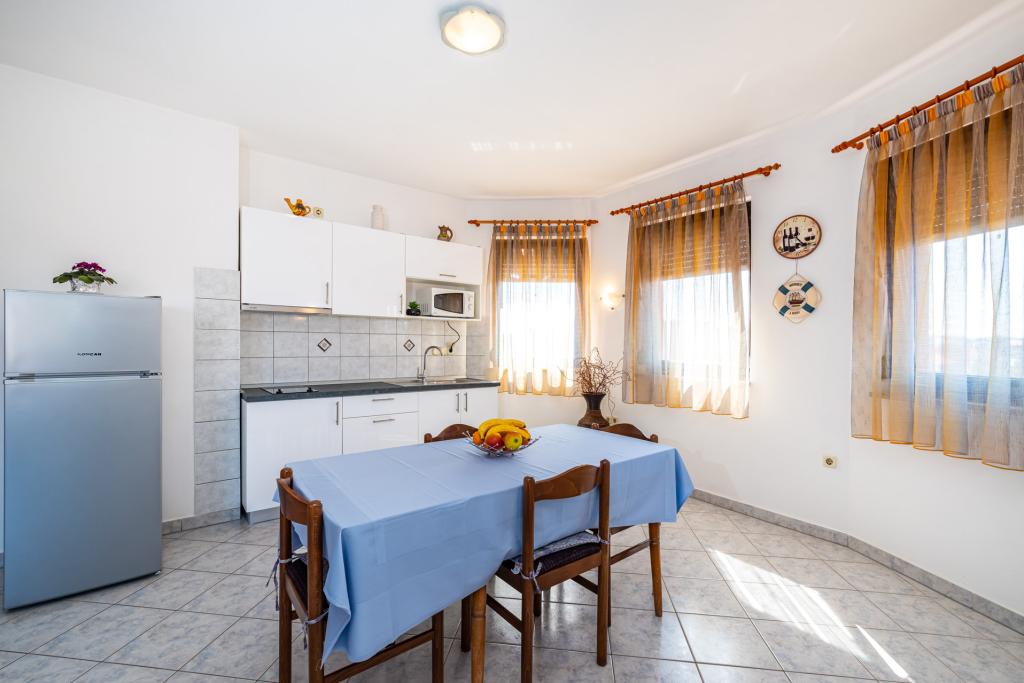 Recommandation pour Mme. Mirjana et son logement. Mon mari et moi avons passé 7 jours merveilleux. La dame est discrète, très douce et arrangeante, une véritable hôtesse. L'hébergement dans un studio entièrement équipé était excellent, tout était propre et soigné. L'hôtesse nous a offert ses tomates et ses concombres cultivés sur place (il semble qu'elle ait regretté notre sort, car dans notre maison, ce qui n'a pas été détruit par les intrus et le soleil a été détruit par la glace récente). Assez d'espace pour se garer. Cour joliment décorée. La plage la plus proche se trouve littéralement à quelques pas de la maison. La plage est soignée, la partie extérieure est en béton et il y a du sable dans la mer. Il y a aussi 2 douches avec eau chaude. Commerces, restaurants, église... tout est à proximité. Nous n'avions pas du tout besoin de voiture. Nous ne l'avons allumé que lorsque nous allions à un concert au parc Vir et Aqua à Biograd.