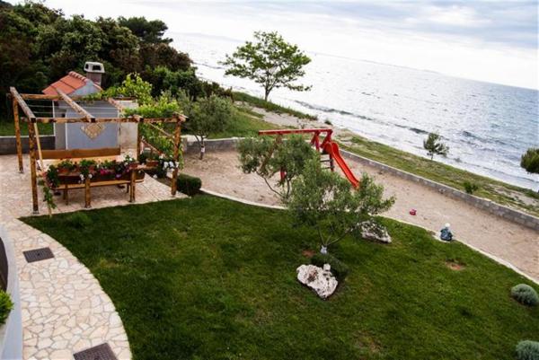 Nos appartements sont situés sur le rivage, la plage dégroupage de grandes foules et le bruit. De la mer à quelques mètres, et sont idéales pour les familles avec des enfants en raison du jardin offrent aire de jeux de sable avec balançoires, toboggans, alors que vous négligemment barbecue ou vous détendre avec une boisson fraîche sur la terrasse. Tous les appartements ont vue sur la mer et sont équipées de TV satellite et de la climatisation. Accessible aux fauteuils roulants est difficile. Les animaux ne sont pas autorisés.