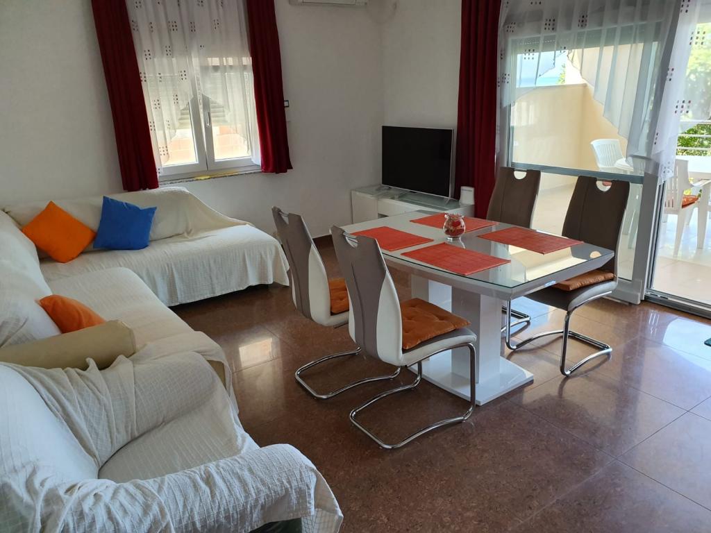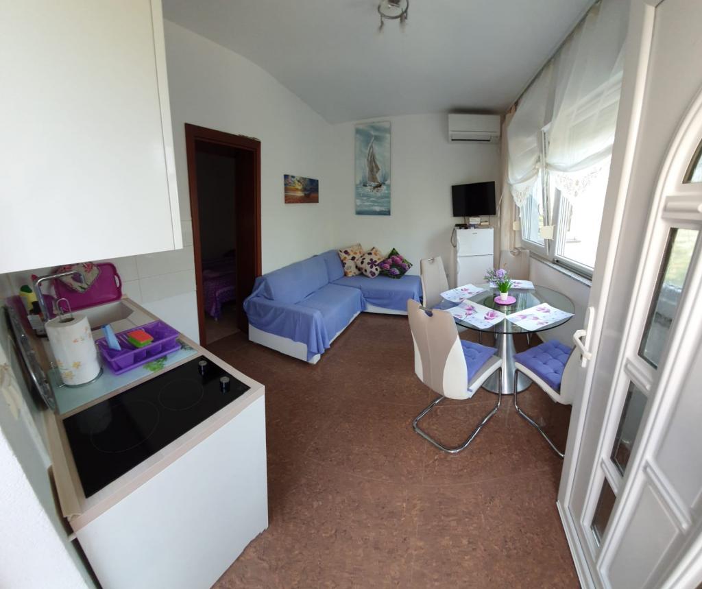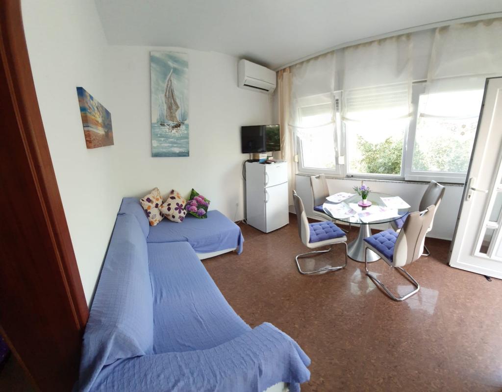 Appartement joliment décoré, spacieux, bien rangé, propre, avec une cuisine parfaitement équipée avec tous les ustensiles nécessaires, deux réfrigérateurs avec congélateur, des moustiquaires aux fenêtres et aux portes-fenêtres, une grande terrasse avec mobilier neuf et balançoire. Tout est conforme à la description de l'appartement. Environnement verdoyant, chaises longues, plage juste en face, plage de sable pour les jeunes enfants à proximité, magnifiques couchers de soleil. Propriétaires accueillants. Quartier calme de Zaton. Je recommande !