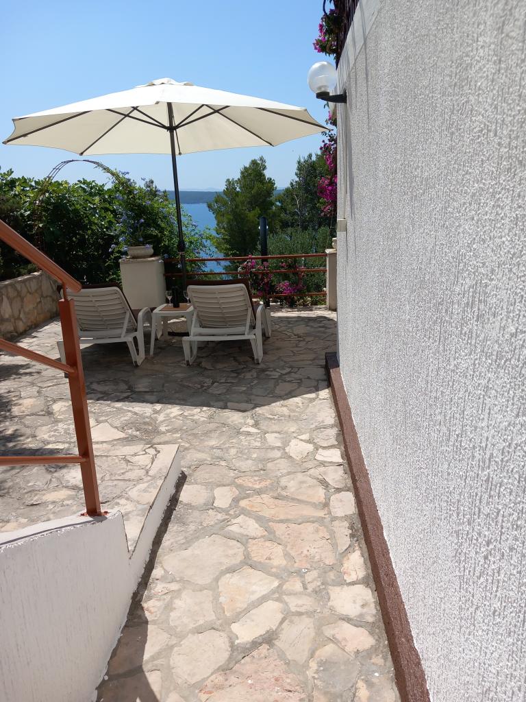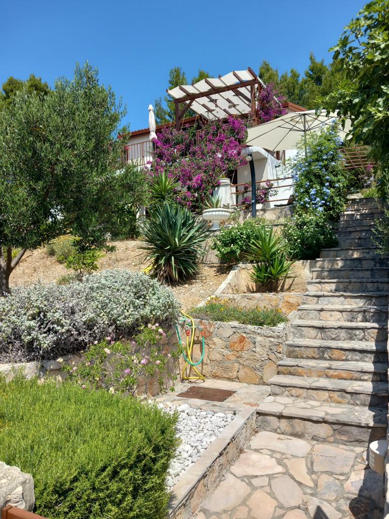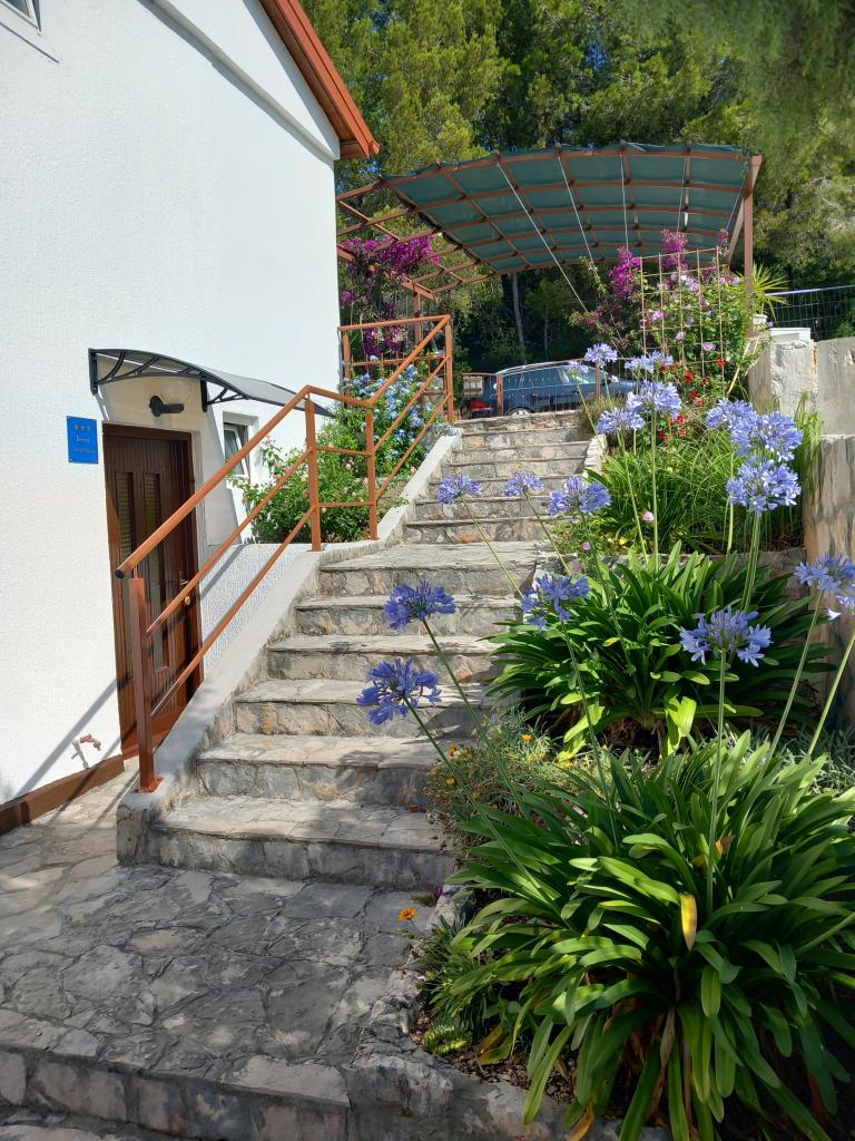 Nous louons un seul appartement entièrement équipé à un étage séparé d'une villa familiale, à 130 mètres de la mer (climatisation, wi-fi, TV satellite, lave-linge, four micro-ondes, machine à café), ce qui signifie que vous êtes le uniquement les invités et ont une intimité totale. L'appartement se compose de deux chambres avec lits doubles, d'une cuisine avec salon (canapé-lit), d'une salle de bains, d'un couloir et d'une grande terrasse avec une belle vue sur la mer ouverte, l'île de Šćedro, Korcula et la péninsule de Pelješac, entourée de un jardin rempli de diverses plantes méditerranéennes. Le stationnement est dans la cour clôturée. Barbecue sur la terrasse. Il y a une douche solaire extérieure dans la cour. Plages, restaurants, boulangerie, aire de jeux pour enfants jusqu'à 250m.