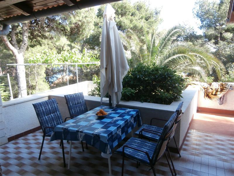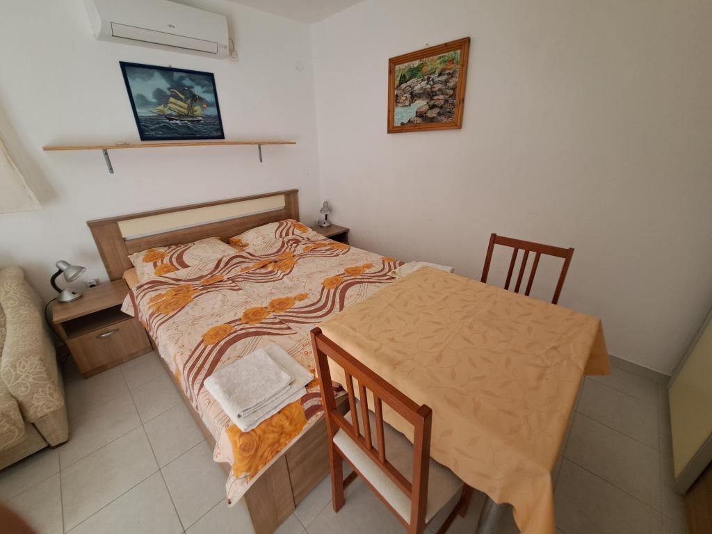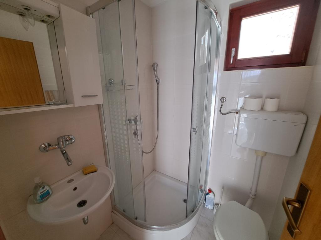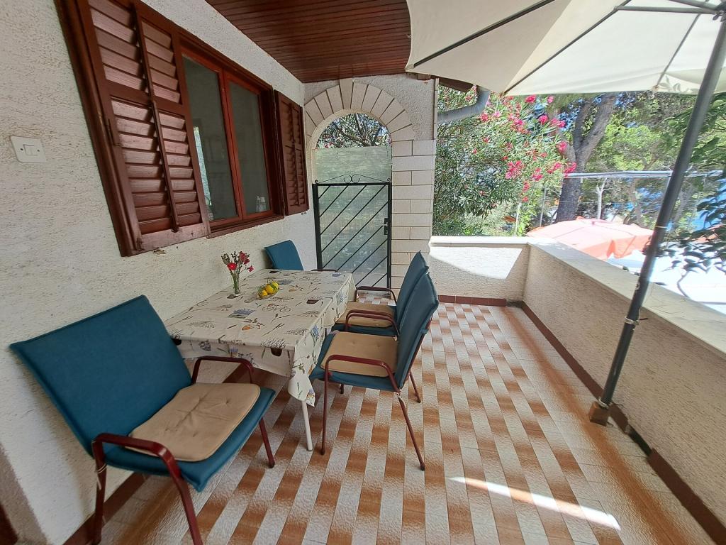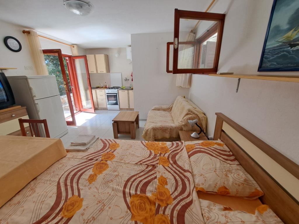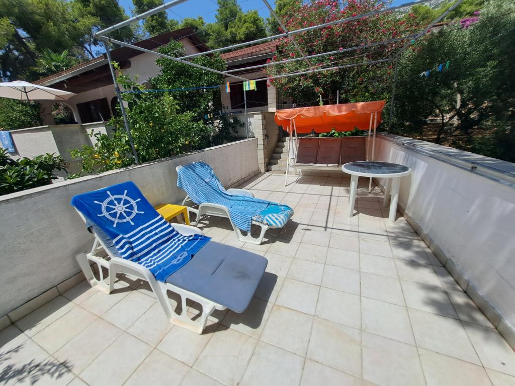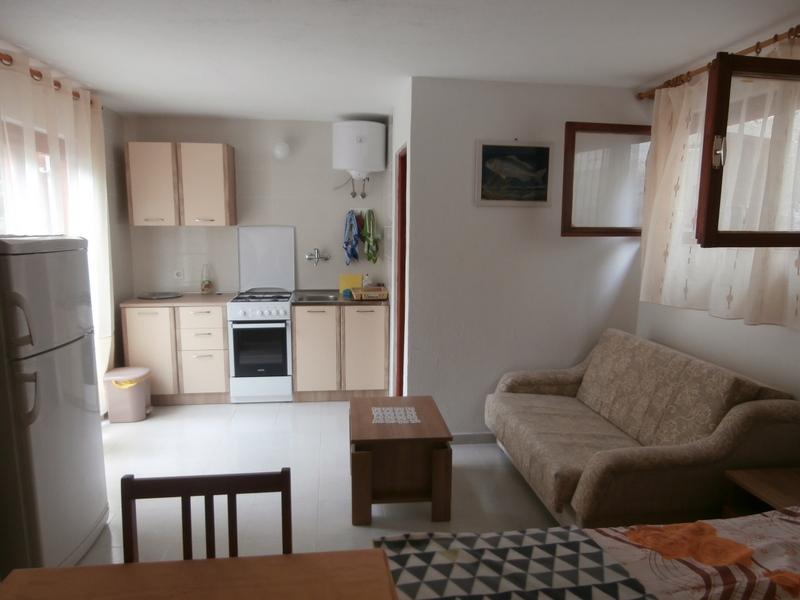 La maison se compose d'un appartement de deux pièces A4 (4+0) et d'un studio A2 (2+1) au rez-de-chaussée. La maison est neuve dans une pinède à proximité d'une belle plage de galets, à 60m de la plage. L'appartement A4, ID51294 se compose de deux chambres, 2+2 lits (lits doubles), si nécessaire un autre lit. L'appartement A4 (4+0) est au rez-de-chaussée, avec une cuisine, une salle de bain et une terrasse couverte pour manger et s'asseoir et une autre terrasse pour les enfants et les bains de soleil. La taille de l'appartement est d'environ 50 m2, terrasses 15 m2 et 25 m2. Nous vous proposons également un nouveau Studio A2 (2+1) ID 51296, taille 40 m2 avec une terrasse. TV SAT et climatisation, internet disponible et garage pour une voiture. Ma famille utilise l'appartement entre ceux-ci à louer pendant l'été.