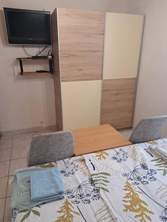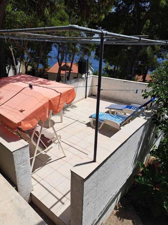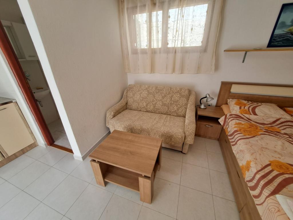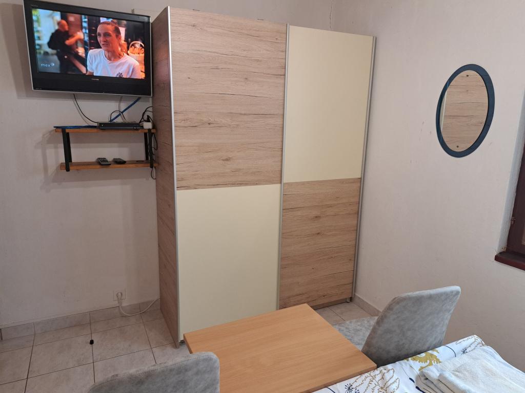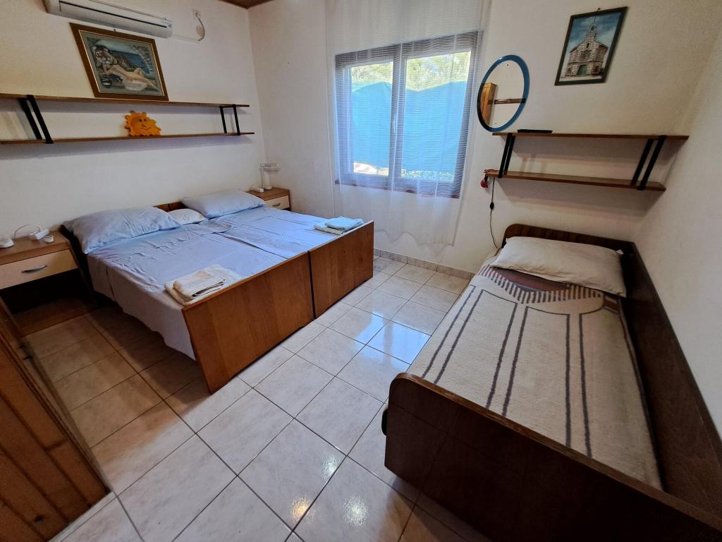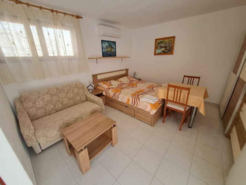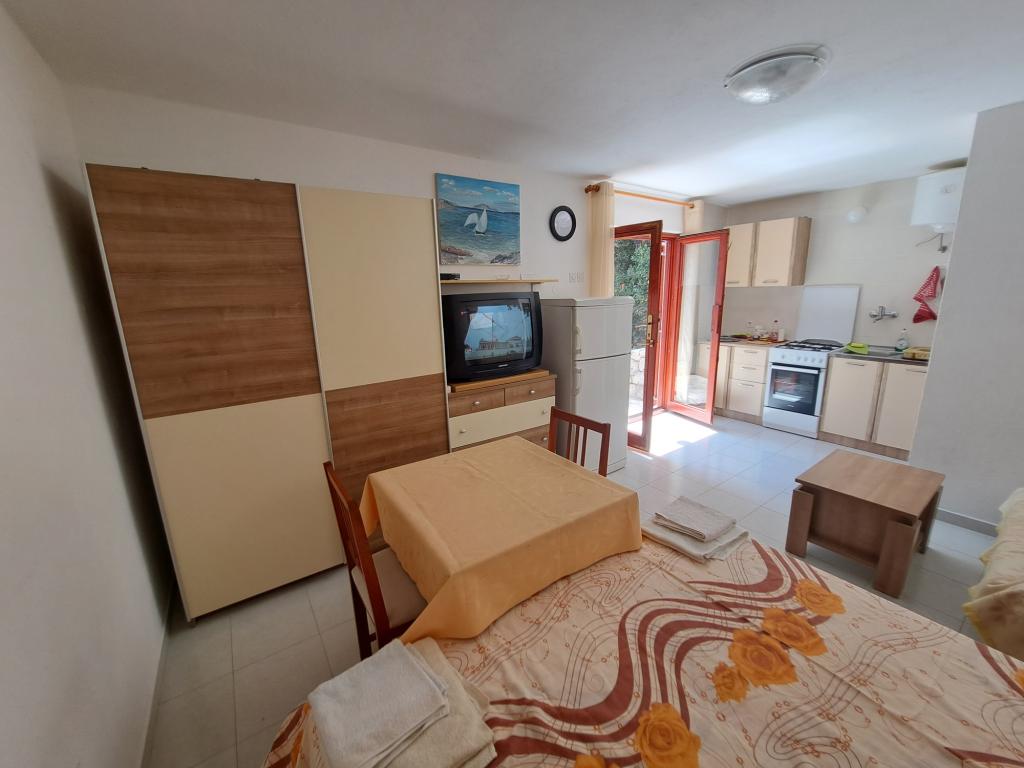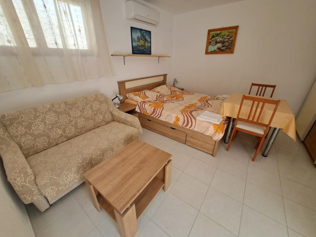 La maison se compose d'un appartement de deux pièces A4 (4+0) et d'un studio A2 (2+1) au rez-de-chaussée. La maison est neuve dans une pinède à proximité d'une belle plage de galets, à 60m de la plage. L'appartement A4, ID51294 se compose de deux chambres, 2+2 lits (lits doubles), si nécessaire un autre lit. L'appartement A4 (4+0) est au rez-de-chaussée, avec une cuisine, une salle de bain et une terrasse couverte pour manger et s'asseoir et une autre terrasse pour les enfants et les bains de soleil. La taille de l'appartement est d'environ 50 m2, terrasses 15 m2 et 25 m2. Nous vous proposons également un nouveau Studio A2 (2+1) ID 51296, taille 40 m2 avec une terrasse. TV SAT et climatisation, internet disponible et garage pour une voiture. Ma famille utilise l'appartement entre ceux-ci à louer pendant l'été.