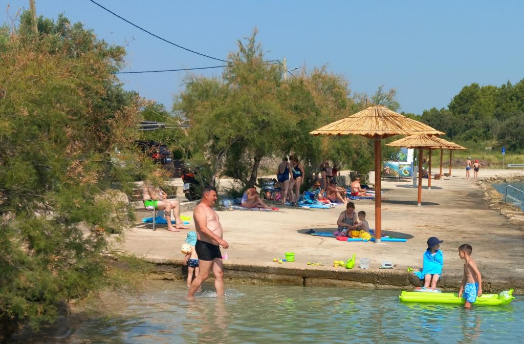 En Ždrelac louer deux suites récemment décorées avec vue sur la mer (front de mer). Un appartement dispose chambre double avec un lit d'appoint dans la cuisine tandis que la chambre offre une chambre avec un lit double et une chambre d'enfants avec deux lits. Chacune d'entre elles équipées avec des ustensiles de cuisine complète, TV, climatisation, appareils et il y a un barbecue, le football et terrains de basket et des toboggans et des balançoires pour les enfants. Ždrelac est un village et le port sur Pasman, l'une des îles de l'archipel. L'île est reliée par ferry à toutes les plages. Attrayant passage Zdrelac, littoral dentelé avec de belles plages de sable font de ce lieu destination touristique exceptionnelle.