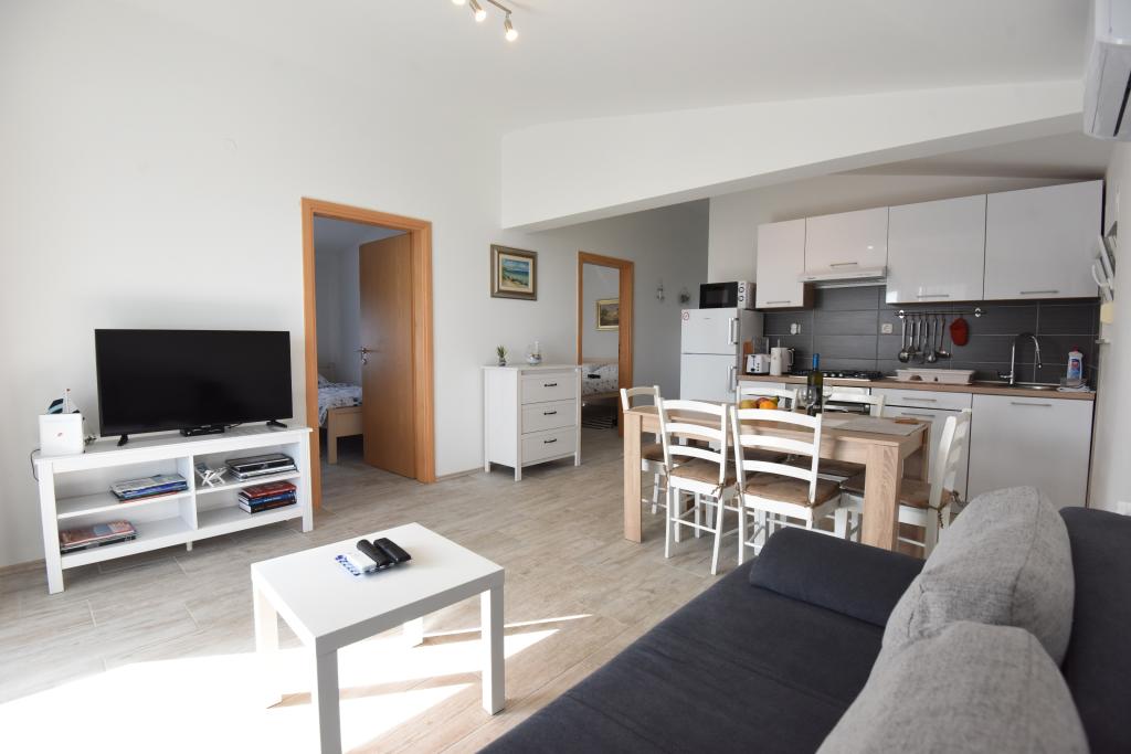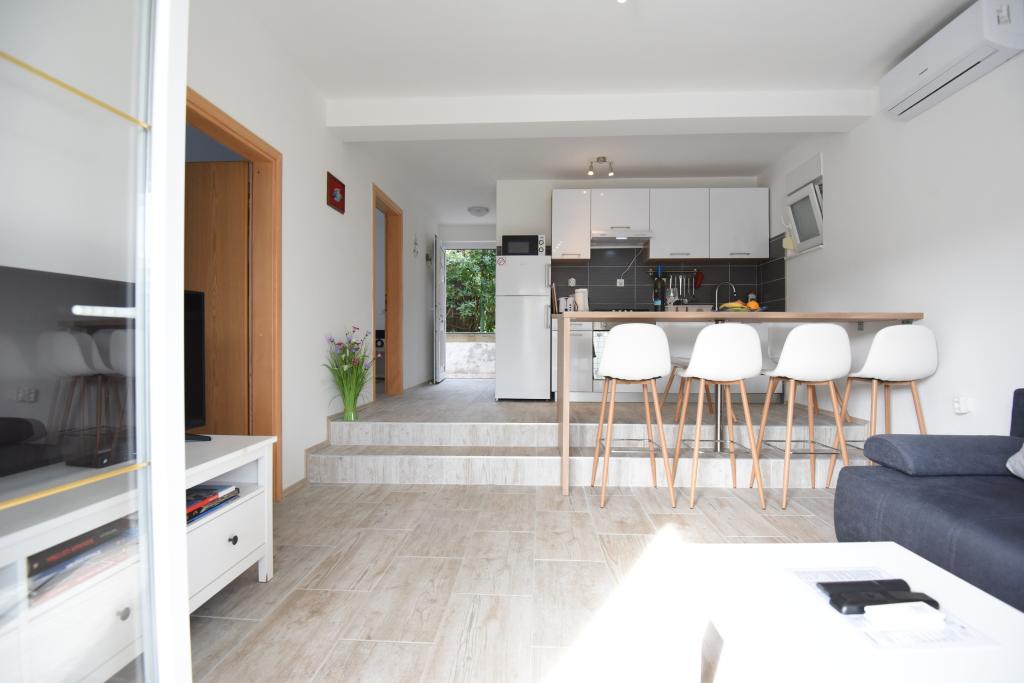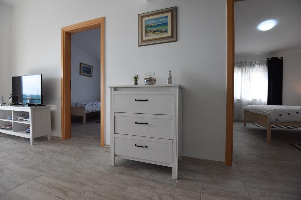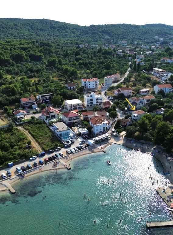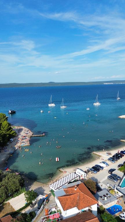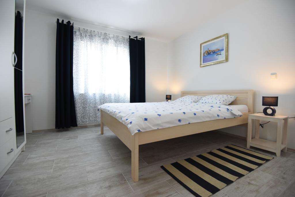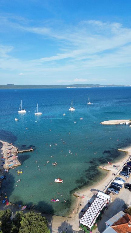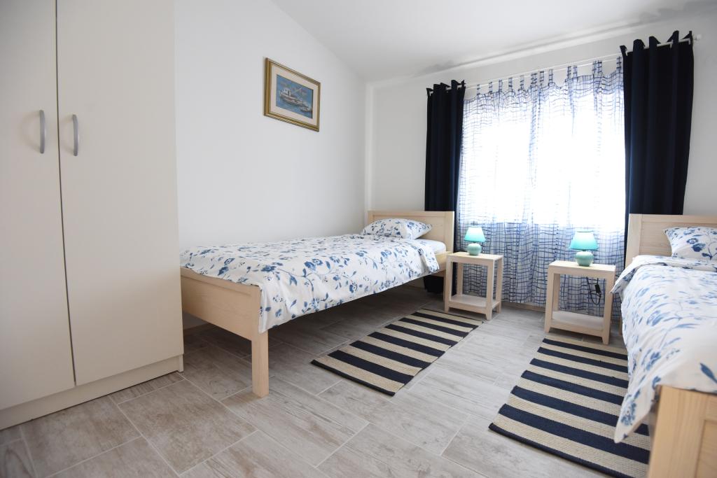 Les appartements spacieux et modernes avec vue sur la mer, situés juste à côté de la plage de Matlovac, sont parfaits pour un séjour en famille avec enfants. Le bâtiment, avec son propre accès, se compose de deux appartements de 75 m² chacun (rez-de-chaussée et premier étage) avec terrasses couvertes. Les appartements sont équipés de tout le confort nécessaire pour des vacances agréables : lits bébé et chaises hautes sont disponibles. Un parking est disponible dans la cour, ainsi qu'un barbecue et une douche extérieure. La plage est pavée/de galets avec un fond sablonneux, et vous trouverez facilement des parasols dans la pinède. Deux cafés-restaurants avec restauration rapide se trouvent à proximité de la plage, avec en plus un trampoline pour enfants et un terrain de beach-volley.