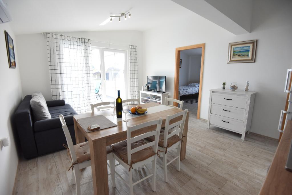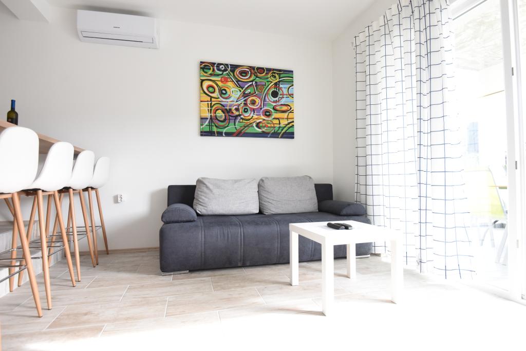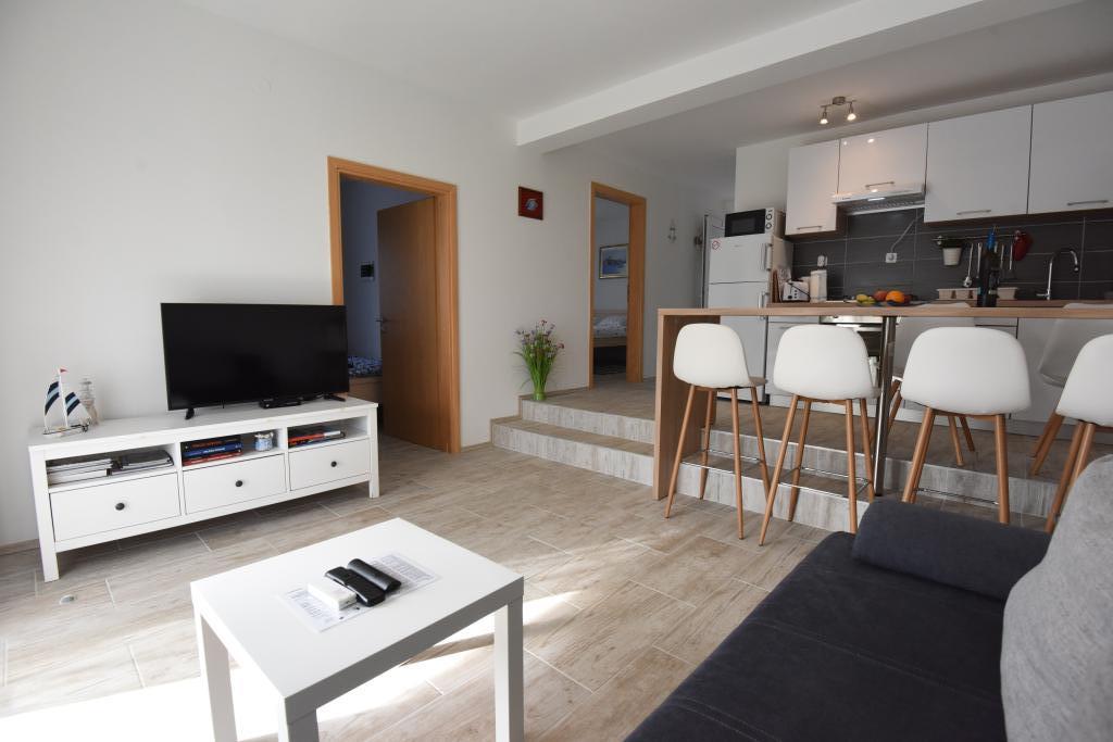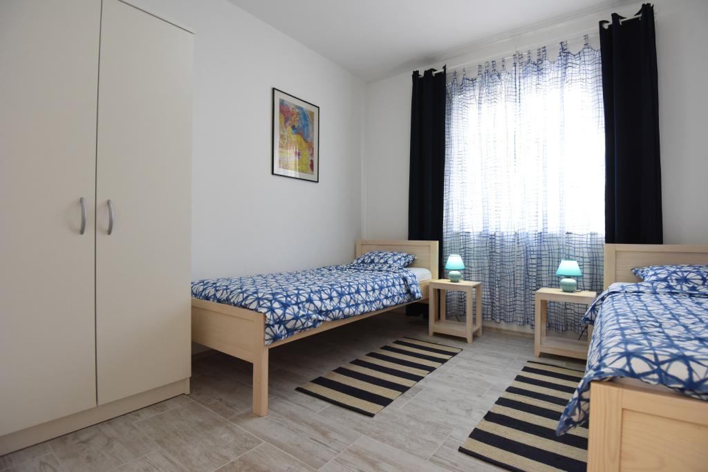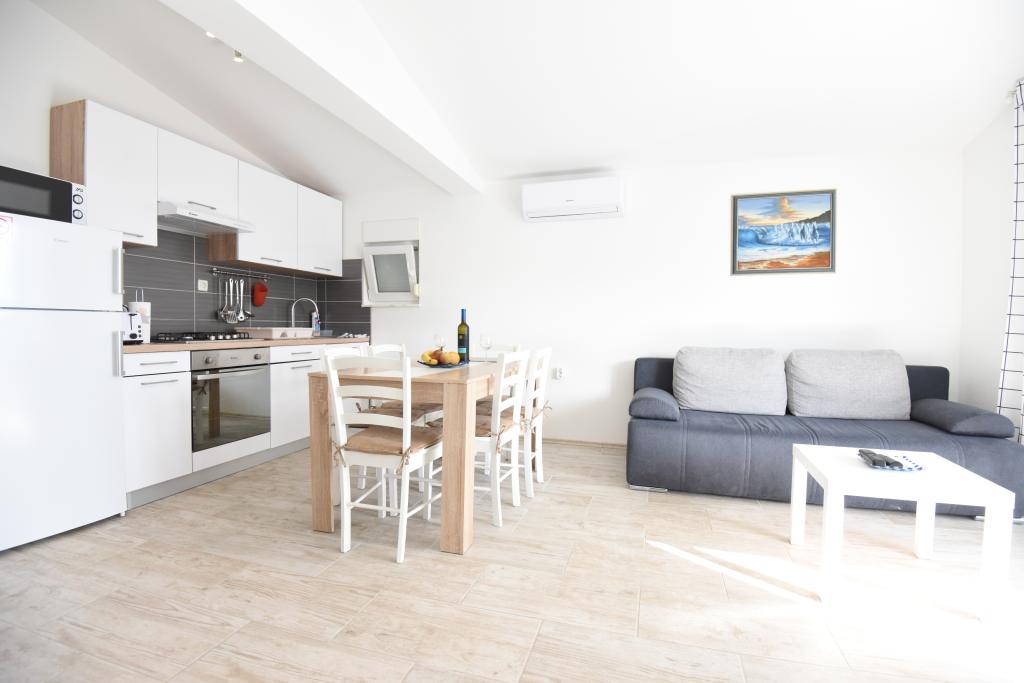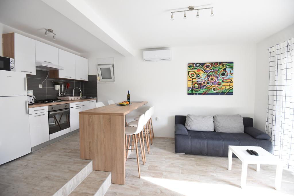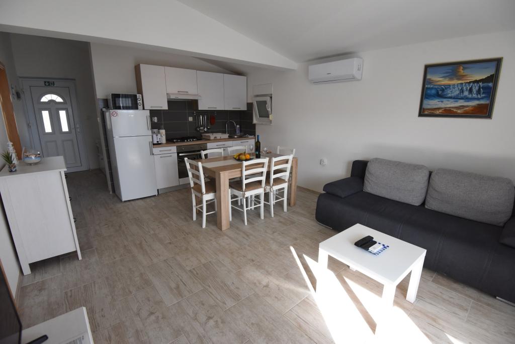 Les appartements spacieux et modernes avec vue sur la mer, situés juste à côté de la plage de Matlovac, sont parfaits pour un séjour en famille avec enfants. Le bâtiment, avec son propre accès, se compose de deux appartements de 75 m² chacun (rez-de-chaussée et premier étage) avec terrasses couvertes. Les appartements sont équipés de tout le confort nécessaire pour des vacances agréables : lits bébé et chaises hautes sont disponibles. Un parking est disponible dans la cour, ainsi qu'un barbecue et une douche extérieure. La plage est pavée/de galets avec un fond sablonneux, et vous trouverez facilement des parasols dans la pinède. Deux cafés-restaurants avec restauration rapide se trouvent à proximité de la plage, avec en plus un trampoline pour enfants et un terrain de beach-volley.