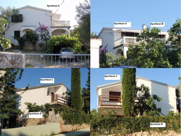 Appartements A et B sont situées au premier étage, terrasse face à la mer et le soleil sont protégés par des auvents. Le salon dispose d'un lit double et une cuisine. Dans une petite chambre avec un lit superposé pour les enfants. L'appartement dispose d'une salle de bains. L'appartement est adapté pour 4 personnes - 2 adultes et 2 enfants. L'appartement dispose de la climatisation. Appartement C est situé au premier étage, terrasse face à l'île et la mer. L'appartement dispose de deux chambres, une chambre avec un lit double et une avec deux lits simples. Le salon dispose d'un lit simple et une cuisine. L'appartement dispose d'une salle de bains et est adapté pour 4-5 personnes. L'appartement dispose de la climatisation. Appartement E est situé sur la terrasse rez de chaussée face à l'île et la mer. L'appartement dispose de deux chambres, une chambre avec un lit double et une avec deux lits simples. Le salon dispose d'un lit simple et une cuisine. L'appartement dispose d'une salle de bains et est adapté pour 4-5 personnes. Tous les appartements sont équipés avec TV et la télévision par satellite, réfrigérateur de 180 litres. Plus d'informations sur: www.micka-apartmani.com