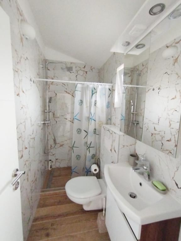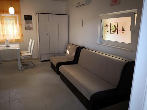 Appartements confortables et climatisés, équipés de tout ce dont vous avez besoin pour des vacances reposantes en famille... Profitez du calme, de la vue depuis la terrasse et du confort de nos appartements, des pinèdes, des sentiers pédestres et cyclables, et des belles plages - qu'elles vous les aimez sableux, caillouteux ou pierres isolées... Tout ce dont vous avez besoin est à 5-10 minutes à pied : boutique, café, restaurant, poste, église, plage, port... Alors n'hésitez quelque chose ne va pas, vous pouvez facilement sauter au magasin, et si le poisson brûle - le restaurant est excellent. . . et vous pouvez vous rafraîchir avant de partir dans la douche extérieure - donc cela ne vous dérange pas que la salle de bain soit occupée par votre femme ou enfants ;-) La voiture peut se reposer tout le temps dans la cour, et vous pouvez l'utiliser pour explorer deux îles sans foule avec beaucoup de beautés cachées... Parce que, un endroit paisible ne veut pas dire ennuyeux : chaque endroit a sa propre fête, ou son antiquité, ou sa beauté naturelle - qui n'attend que vous pour la reconnaître et en remplir votre âme pour toutes les situations que vous êtes avec nous fuyez :-)