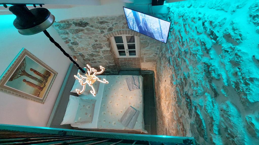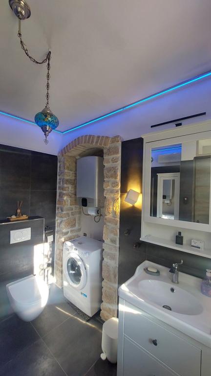 Sundial Stone House est une maison en pierre entièrement rénovée et transformée en maison de vacances en 2023. Il se compose d'un rez-de-chaussée, d'un premier étage et d'une galerie. Alliant traditionnel et moderne, il offre d'excellentes conditions pour des vacances reposantes. Il est situé à l'entrée d'un authentique vieux manoir dalmate au cœur de Ždrelac sur l'île de Pašman, à seulement quelques minutes des plages de sable et de rochers. La cour offre le plaisir de s'asseoir dans l'ambiance d'une cour en pierre entourée d'authentiques plantes méditerranéennes et une vue sur le jardin fleuri, qui culmine dans les soirées éclairées par de nombreuses lampes de jardin. Possibilité d'utiliser transats et bancs à l'ombre des mimosas, néfliers et oliviers et de se rafraîchir grâce à la douche extérieure. La surprise est une offre supplémentaire - une petite maison en pierre de 16 m2 - dite "maison à suie" qui offre la possibilité de préparer un barbecue ou de "cuire" sur un grand feu et l'utilisation d'un four à pain, et en il, les plats préparés, peuvent également être consommés car il dispose d'une table pour 5 personnes.