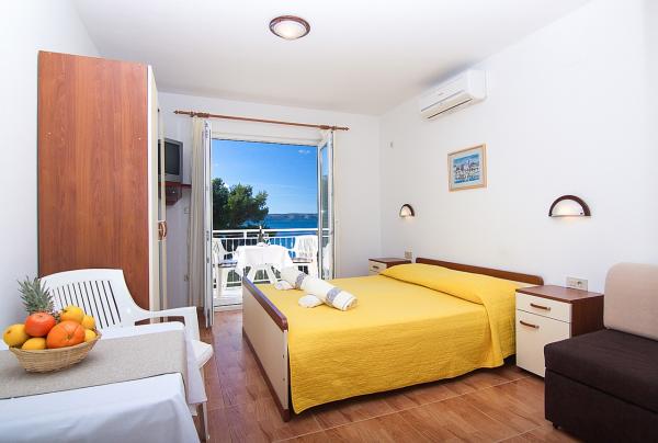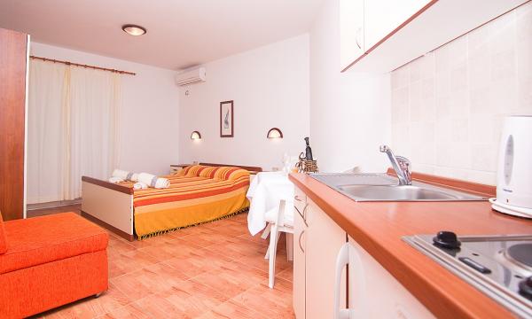 Chambre d'Adriana sont près de la mer et positionné de telle sorte que depuis le balcon vous avez une vue magnifique sur la plage voisine, ainsi que toute la place. Le bâtiment comprend 21 appartements de studio. Les studios sont double avec la possibilité d'un lit supplémentaire sur votre demande. Elles sont équipées d'une connexion WI-FI, climatisation, SAT / TV, salle de bain privée, une kitchenette avec réfrigérateur et d'un grand balcon avec vue sur la mer. Devant le bâtiment est un grand parking privé et d'un barbecue pour nos clients.