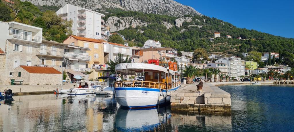 Živogošće est situé dans la partie sud de la Riviera Makarska au pied du Biokovo. Il se compose de trois endroits plus petits et non connectés sur la côte : Porat - Mala Duba - Blato. Živogošće est habitée depuis l'époque illyrienne et romaine, comme en témoignent les monticules / tombes illyriens au sommet de la colline Suzina et les vestiges de villas rustiques à Mala Duba et Blato. La beauté naturelle des oliveraies et des forêts de pins, qui dominent des plages de galets fins, 6 km de plages interconnectées, une mer propre et non polluée, le tout situé au pied d'une haute montagne, le sommet Sutvid 1155 m, donne aux touristes une atmosphère et un plaisir particuliers . Nous proposons un hébergement dans un appartement spacieux pour 4 + 2 personnes situé dans une maison familiale en pierre de style dalmate, au premier rang de la mer. L'appartement a deux étages et se compose de deux chambres, deux salles de bains, un salon avec cuisine et un balcon spacieux. La superficie totale de l'appartement est de 90 m2. L'appartement a une vue inoubliable sur la mer et les îles environnantes, climatisation, internet, TV et parking sécurisé.