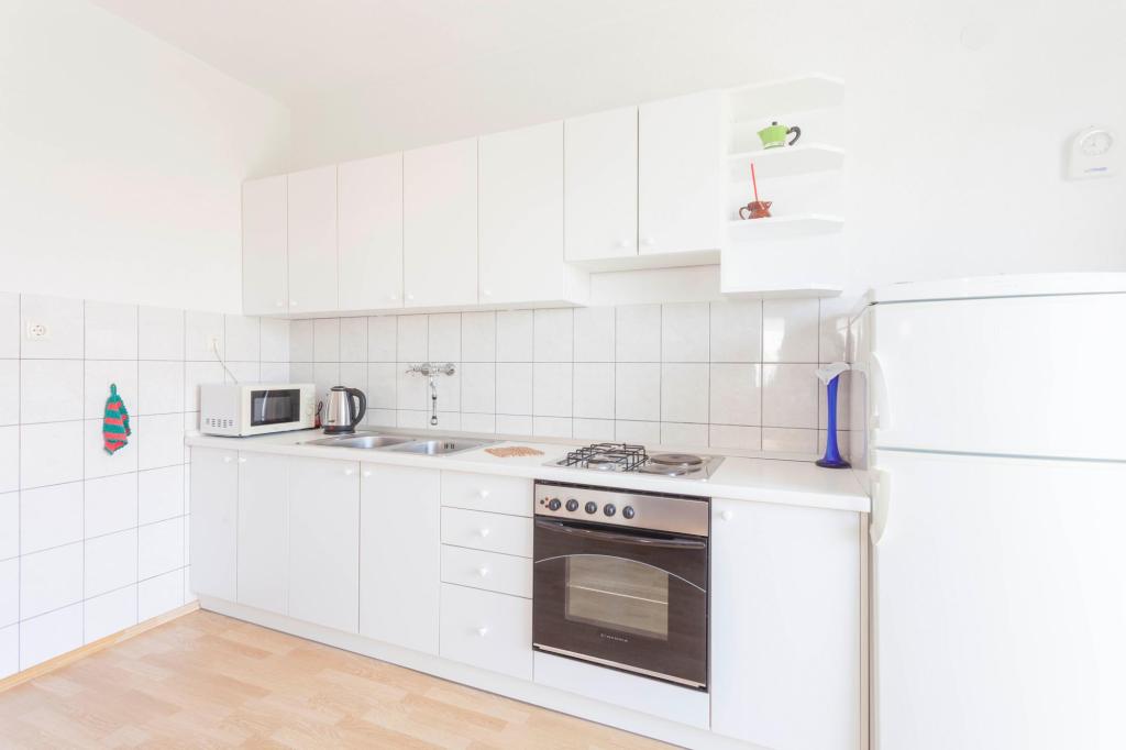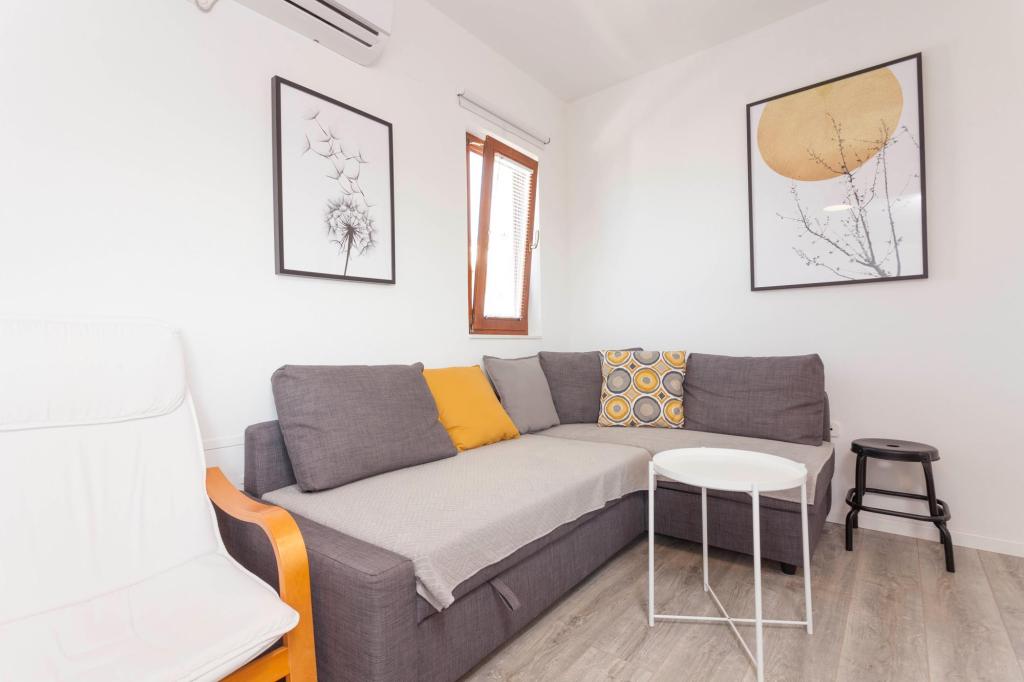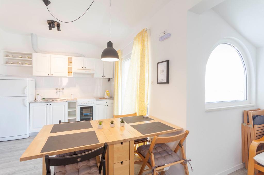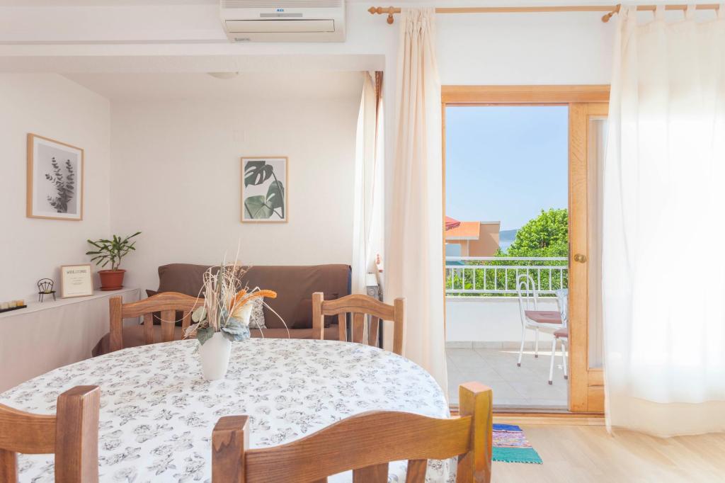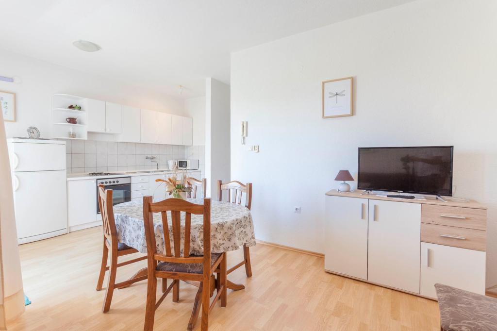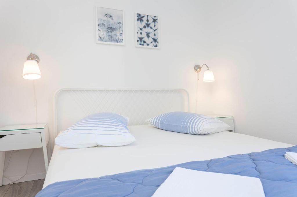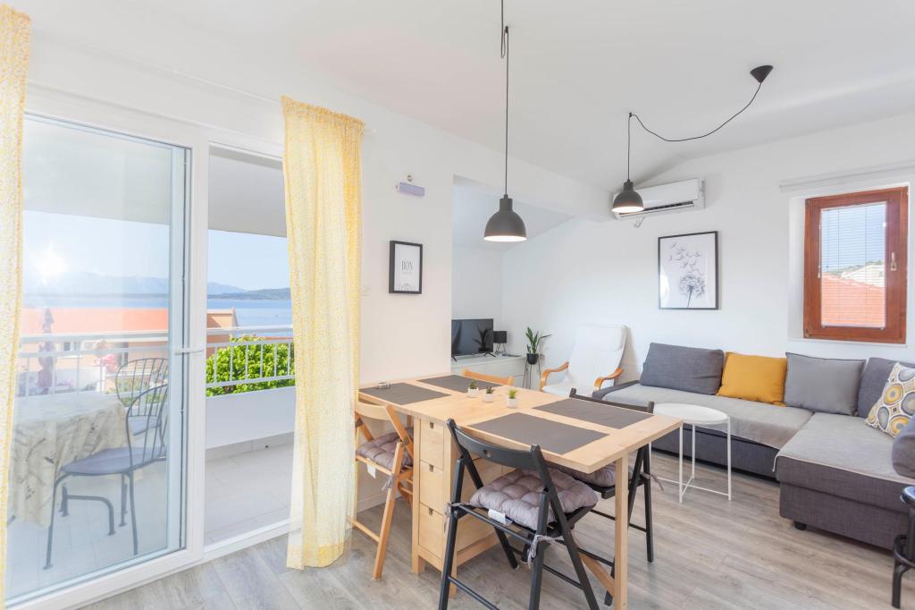 Appartements confortables avec deux chambres, cuisine spacieuse et salon avec vue sur la mer, près de la plage. Parking inclus dans le prix.